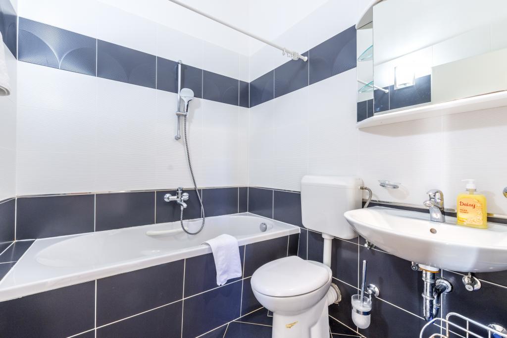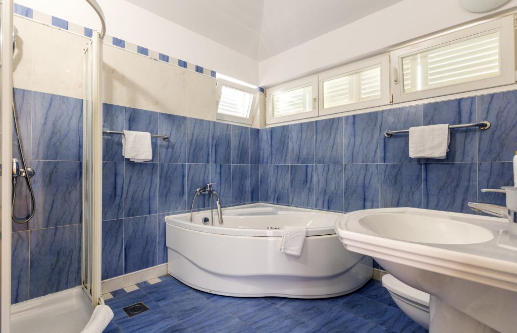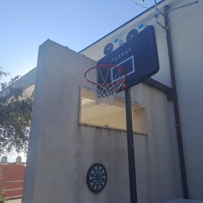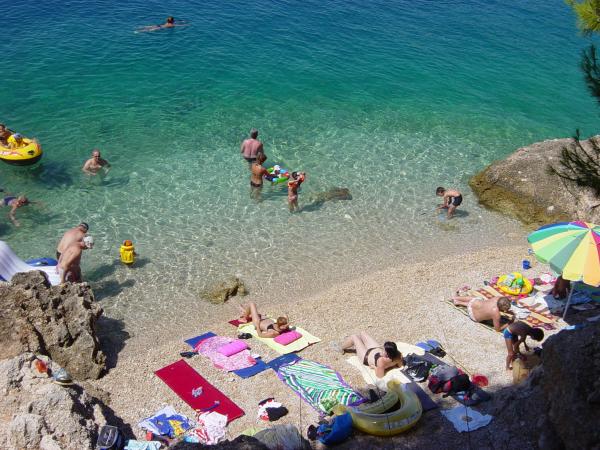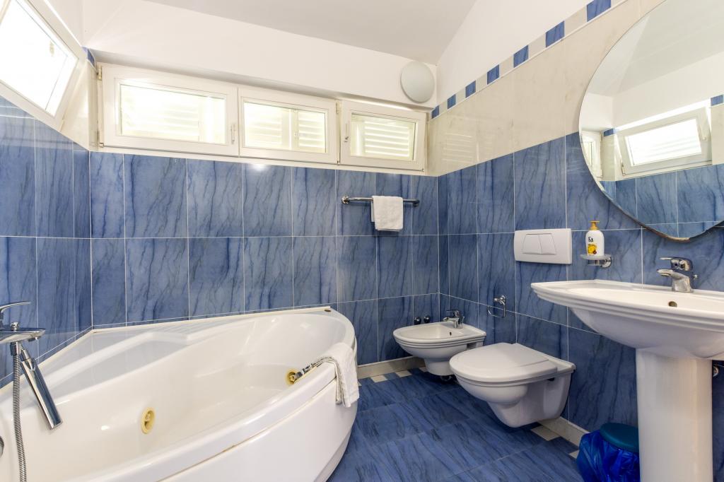 Opłata jest wliczone w cenę.Każdy z naszych gości witany jest powitalnym drinkiem po przyjeździe. Oferujemy również wynajem łodzi lub motorówki dla wszystkich gości, organizujemy rafting na rzece Cetina, wycieczki na wyspę Brač itp. Wszystkie apartamenty mają dostęp do grilla na świeżym powietrzu. Parking jest dostępny dla wszystkich apartamentów tuż obok willi. Piękne kamieniste plaże znajdują się 30 metrów od willi. Basen jest przeznaczony wyłącznie do użytku dużego luksusowego apartamentu typu A 14 + 2 (willa - oddzielny dom), inne apartamenty nie mają do niego dostępu. Z basenu korzysta wyłącznie duży luksusowy apartament (willa), inne apartamenty nie. Willa z basenem (duży apartament typu A 14 + 2) znajduje się w oddzielnym budynku. Willa z basenem posiada siedem sypialni dwuosobowych, cztery łazienki z toaletami, jedną osobną toaletę, dwa salony, siłownię z sauną, rzutki, kosz do koszykówki itp. Wszystkie pozostałe apartamenty (typ A 2+2, Studio +2 i A 4+2) znajdują się w innym, oddzielnym budynku, który jest oddalony o 6 metrów od willi z basenem.