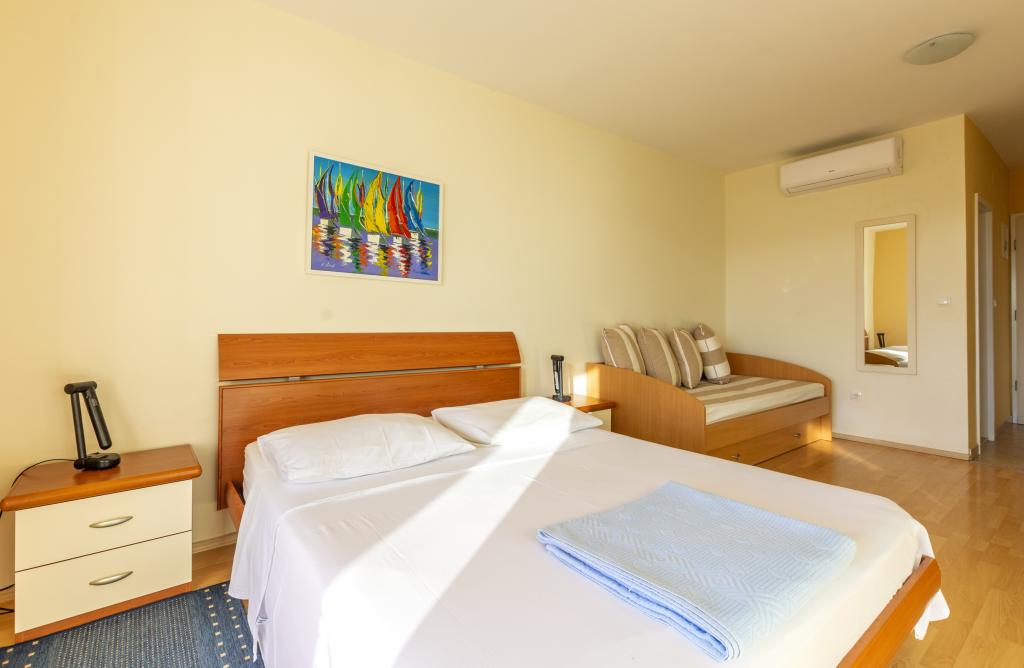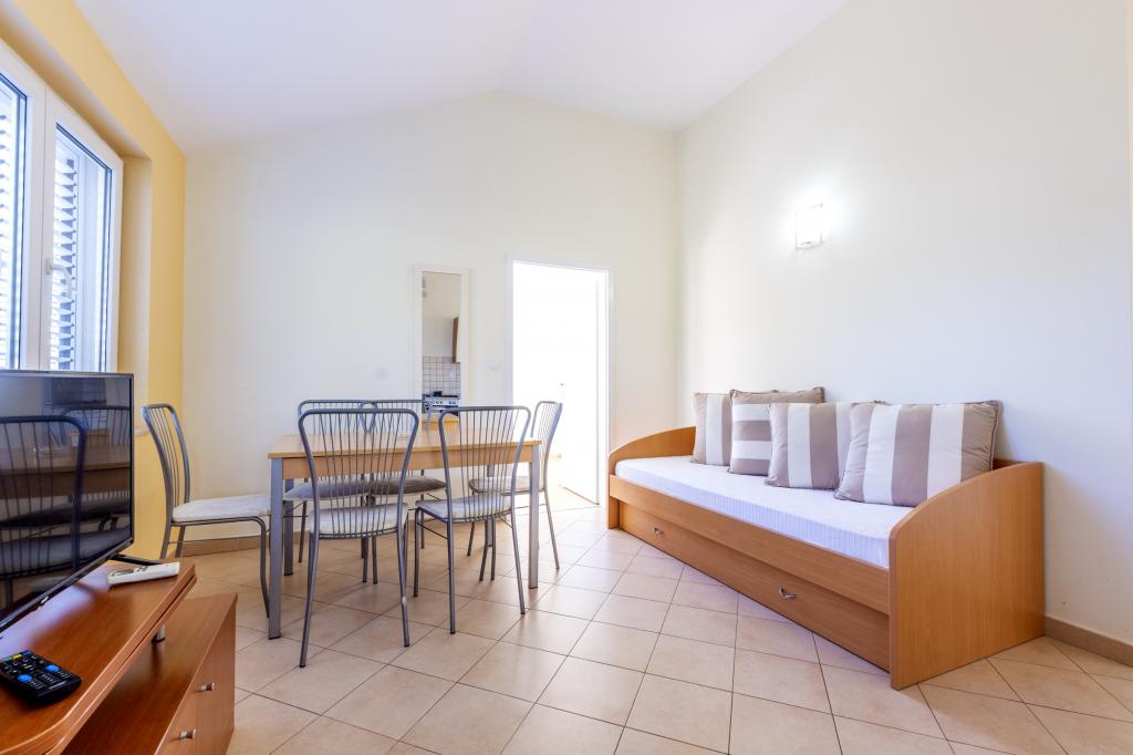 Czytaj więcej KwaterPłatność: 20% zaliczki przy rezerwacji, pozostałe 80% gotówką po przyjeździe do apartamentu. Zaliczka jest wpłacana bezpośrednio na konto właściciela. Idealny czas przyjazdu do apartamentu to po godzinie 15:00, a idealny czas wyjazdu to do godziny 10:00. Willa z basenem (duży apartament typu A 14+2) jest oddzielnym budynkiem. Wszystkie pozostałe apartamenty (typ A 2+2, Studio +2 i A 4+2) znajdują się w innym oddzielnym budynku, który jest oddalony o 6 metrów od willi z basenem. Czas przyjazdu do willi z basenem (duży apartament typu A 14+2) to po godzinie 16:00, a idealny czas wyjazdu to do godziny 10:00. Czas przyjazdu do pozostałych apartamentów to po godzinie 15:00, a idealny czas wyjazdu to do godziny 10:00. Posiadamy również własną boję do cumowania jednostek pływających (motorówek, łodzi i innych jednostek pływających), która znajduje się bezpośrednio przed apartamentem.
