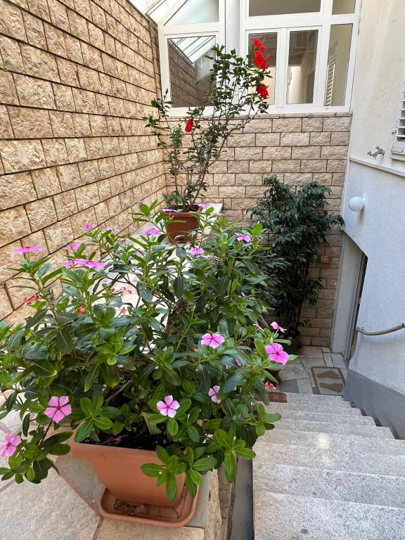 Apartamenty Ruža znajdują się w domu rodzinnym na 1. i 3. piętrze. Dom położony jest 10 min. spacerem od centrum miasta i dużej miejskiej plaży. W pobliżu znajdują się supermarkety, restauracje, kawiarnie, bank i stacja benzynowa. Apartament A4 2 o powierzchni 70 metrów kwadratowych, posiada dwie sypialnie z łóżkami małżeńskimi, salon z 2 dostawkami i telewizorem, łazienka z pralką. Apartament posiada balkon z pięknym widokiem na morze, miasto Omiš i wyspę Brač. Apartament A2 2 o powierzchni 70 m2 składa się z dużego pokoju z podwójnym łóżkiem, kuchni i salonu, które znajdują się na jednym obszarze o powierzchni 30 m2. W salonie znajdują się 2 dodatkowe łóżka i telewizor. Apartament posiada duży taras z pięknym widokiem.