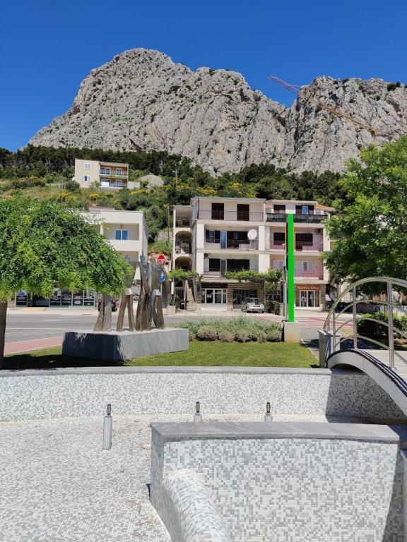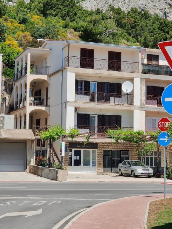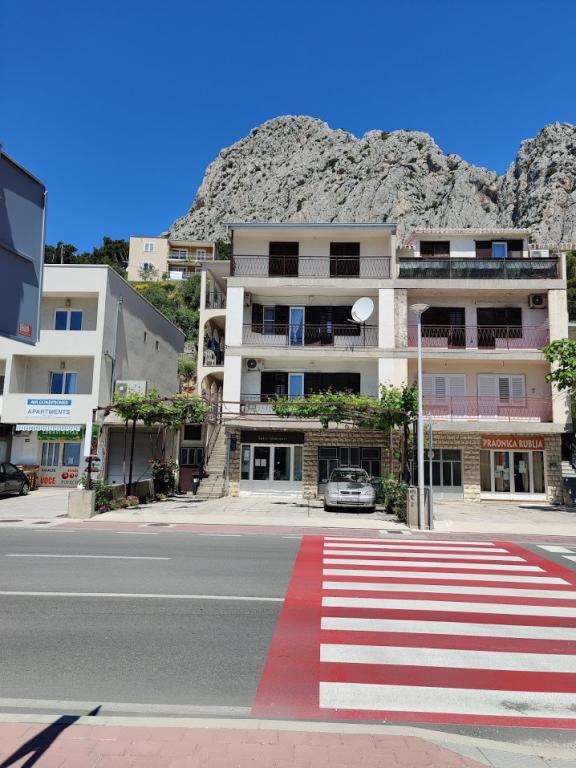 Dom położony jest przy wjeździe do Omis od Splitu. Naprzeciwko domu znajduje się w centrum handlowym Studenac, auto obóz mewa oferuje liczne obiekty sportowe i rekreacyjne, a Dino park rozrywki i park rozrywki dla małych i dużych. Do plaży jest 200 metrów, a do centrum Omis 800m (10 minut piechotą).