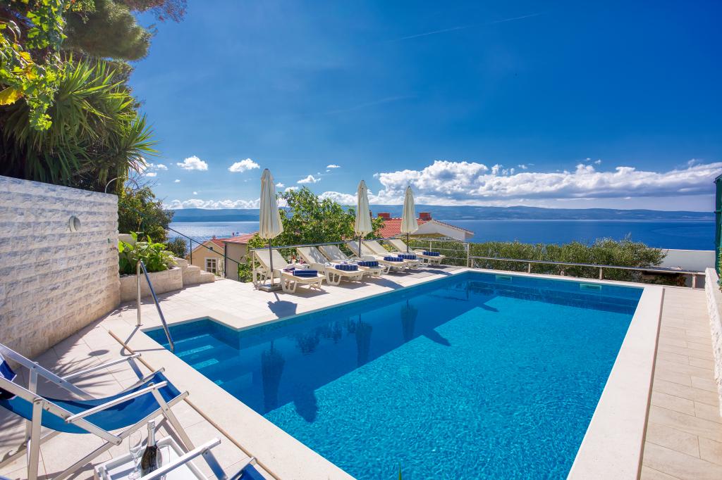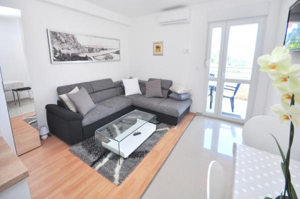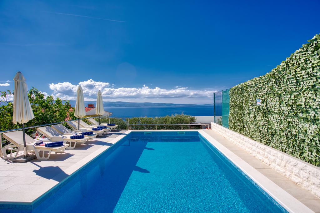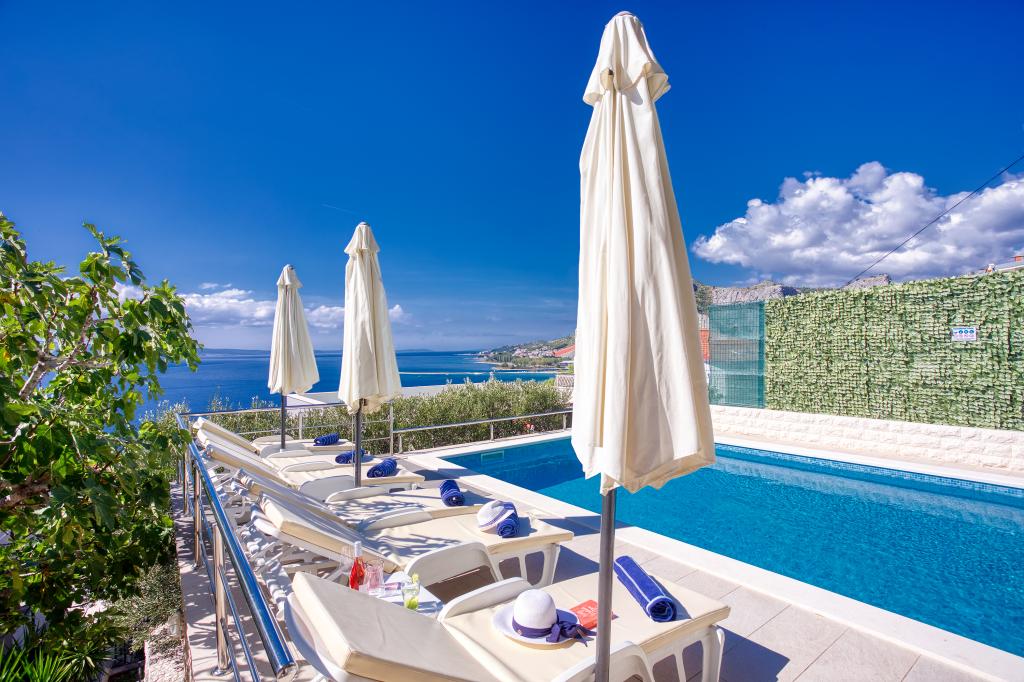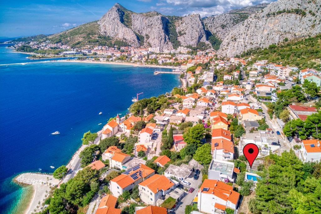 nowoczesne apartamenty w spokojnej okolicy Omis w otoczeniu śródziemnomorskiej roślinności, z widokiem na morze.