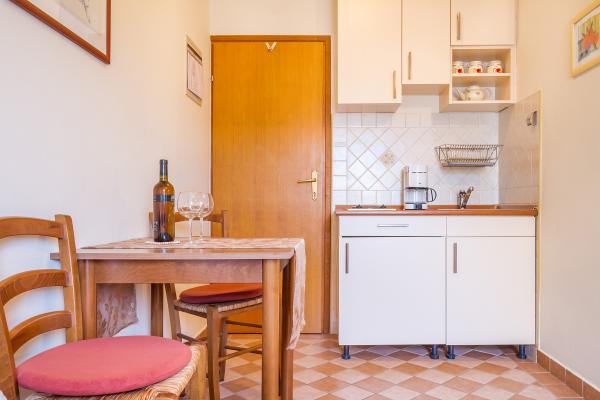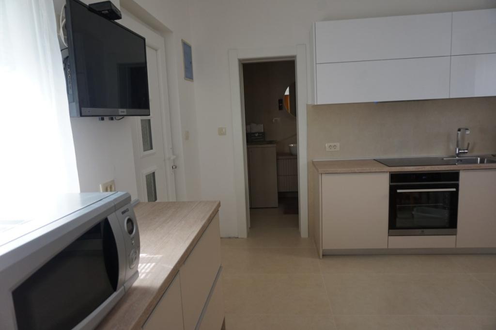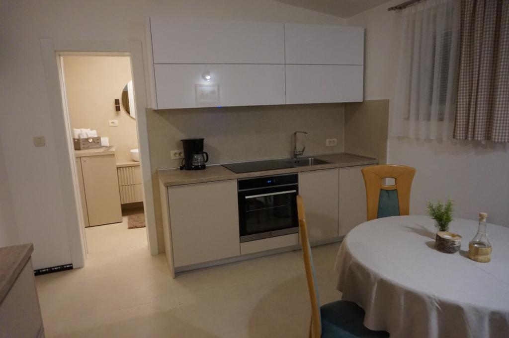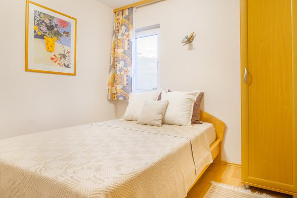 To jeden z apartamentów, jakich można sobie życzyć – cicha lokalizacja, parking na podwórku, morze oddalone o około 250 metrów, a do pięknej, kamienistej plaży można zejść ścieżką przez niewielki las. Morze jest czyste, a co najważniejsze, nie ma tu tłumów. Nie polecamy go małym dzieciom ze względu na brak łagodnego zejścia do morza. Apartament lśni czystością, jest schludny i na każdym kroku widać, jak bardzo gospodarze dbają o każdego gościa. Niezależnie od potrzeb, dyskretni gospodarze dołożą wszelkich starań, aby zapewnić Państwu wszystko, czego potrzeba do udanego wypoczynku. Jednym słowem, to wspaniały apartament na spokojny i cichy wypoczynek.