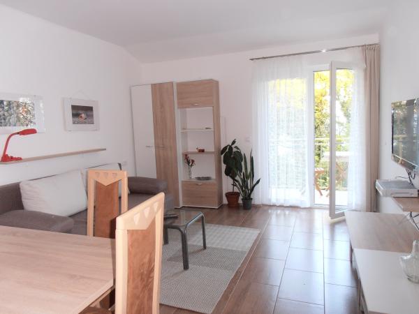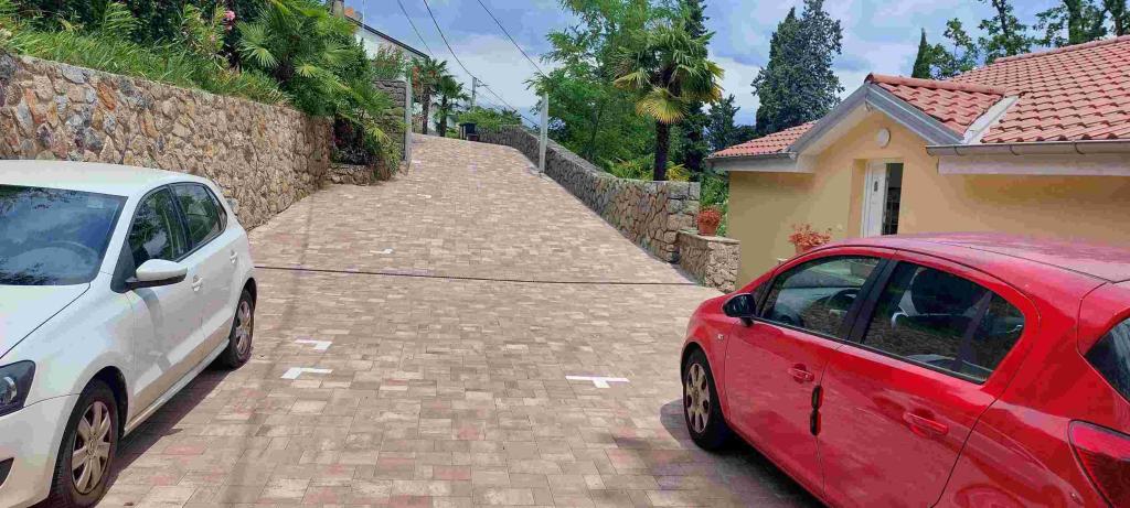Dwa nowo wybudowane i nowocześnie wyposażone apartamenty w Opatiji (2016), blisko morza i Villa Ariston, niedaleko Grand Hotelu Adriatic i Thalassotherapy, w otoczeniu bujnej zieleni. Własny parking. Każda sypialnia posiada łazienkę. Certyfikat energetyczny klasy A. Apartament A1 posiada pokój dzienny z wyjściem na balkon, wyposażony w rozkładaną sofę (łóżko dla 2 osób), wyposażoną kuchnię ze zmywarką, sypialnię (łóżko dla 2 osób), łazienkę z wanną. toaleta i prysznic oraz osobna toaleta. Dzięki temu każdy pokój ma własną toaletę. Apartament A2 posiada wyposażoną kuchnię ze zmywarką, pokój dzienny z wyjściem na balkon, rozkładaną sofę (łóżko dla 2 osób), 2 sypialnie (w każdej z łóżkiem dla 2 osób). Każdy pokój posiada własną toaletę: 2 łazienki (jedna z wanną i toaletą, druga z klasyczną wanną i toaletą) oraz osobna toaleta.