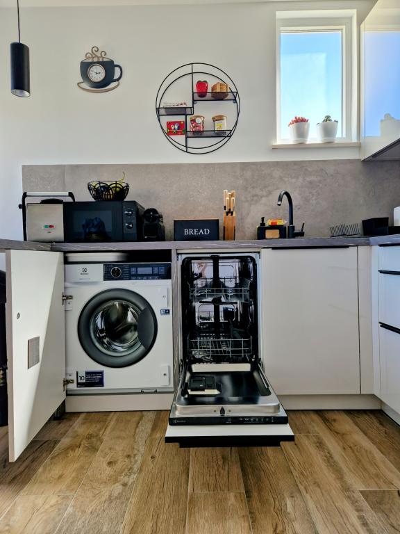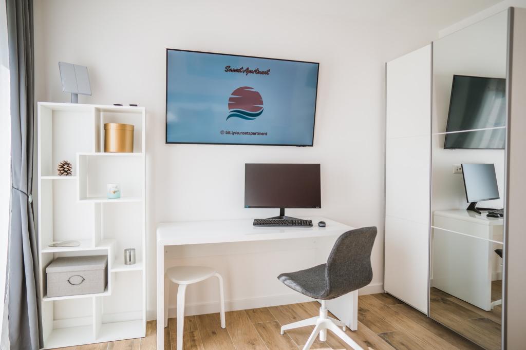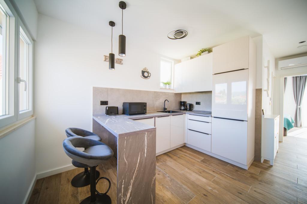 Apartament Sunset to nowoczesny i w pełni wyposażony apartament dla dwóch osób, położony w Orebiću na pięknym półwyspie Pelješac. Apartament znajduje się na pierwszym piętrze domu rodzinnego i posiada prywatne schody oraz osobne wejście, co zapewnia komfort i prywatność podczas pobytu. Dom znajduje się zaledwie 80 metrów od morza, a centrum miasta oddalone jest o kilka minut spacerem, gdzie znajdują się sklepy, apteki, restauracje i inne udogodnienia. W apartamencie znajduje się: W pełni wyposażona kuchnia z jadalnią. Sypialnia z wygodnym łóżkiem małżeńskim o wymiarach 180 × 200 cm, telewizorem oraz biurkiem z monitorem i klawiaturą – idealne rozwiązanie, jeśli łączysz wakacje z pracą zdalną. Nowoczesna łazienka. Dwa balkony, idealne na relaks przy porannej kawie lub wieczornym zachodzie słońca. Prywatne miejsce parkingowe przed domem. Aby Państwa przyjazd był jeszcze przyjemniejszy, goście otrzymają pakiet powitalny. Życzymy miłego pobytu w apartamencie Sunset w Orebiću.