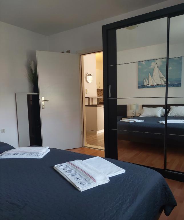 Zakwaterowanie jest bardzo dobre, wszystko jest schludne i czyste. Mieszkanie ma wszystko, czego potrzebujesz do pobytu. Przyjaźni gospodarze. Mieszkanie wygląda dużo lepiej osobiście niż na zdjęciach. Przed apartamentem znajduje się ogromny taras odpowiedni dla mniejszych dzieci, ale także do siedzenia, ponieważ przez cały dzień jest w cieniu. Polecam go rodzinom z małymi dziećmi, ale także wszystkim, którzy chcą spędzić wakacje w znakomitych warunkach noclegowych.