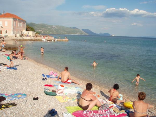 Apartament blisko morza, ok. 80 m od plaży, w centrum. Najbliższa plaża jest żwirowa. Apartament na pierwszym piętrze składa się z 2 sypialni (każdy pokój posiada klimatyzację), kuchni, TV-SAT, bezprzewodowego internetu, wanny/WC, balkonu z widokiem na morze. Parking. Mieszkanie na parterze składa się z sypialni, kuchni, oddzielnego salonu z kanapą, na której mogą spać dwie osoby dorosłe, TV SAT, bezprzewodowy internet, klimatyzacja, duży taras, parking. Sprzedajemy nasze wysokiej jakości wino krajowe w dobrej cenie. Jesteśmy około 100 m od sklepu, piekarni, restauracji i około 200 m od portu, z którego odpływają łodzie na Korculę, jeśli chcesz odwiedzić wyspę Korcula. Rejs statkiem na Korculę trwa 15 minut.