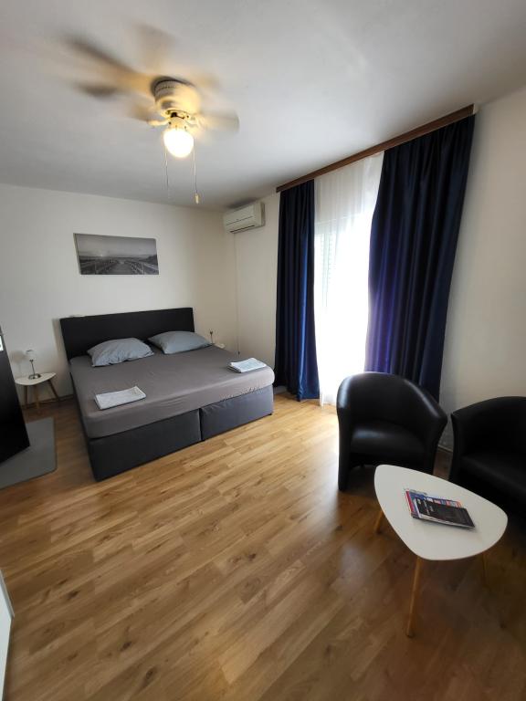 Nasz obiekt noclegowy jest szczególnie odpowiedni dla grup przyjaciół lub rodzin z dziećmi. Orebić to idealne miejsce zarówno dla osób poszukujących spokojnego i relaksującego wypoczynku, jak i dla tych, którzy preferują bardziej aktywny wypoczynek i spędzanie czasu na łonie natury. Orebić słynie z pięknych, żwirowych plaż z krystalicznie czystym morzem, długiej promenady nadmorskiej oraz bogatej historii morskiej. Miłośnicy aktywnego wypoczynku mogą uprawiać turystykę pieszą i rowerową, zwłaszcza na pobliskim wzgórzu Sveti Ilija, skąd roztacza się spektakularny widok na Kanał Pelješacki i wyspę Korčula. Miejsce to jest również popularne wśród miłośników żeglarstwa, surfingu i innych sportów wodnych. Pobyt w Orebiću daje możliwość zorganizowania rejsów statkiem na pobliskie wyspy, w szczególności na Korčulę, a także odwiedzenia licznych zatok i plaż na półwyspie Pelješac. W pobliżu znajdują się również słynne winnice Pelješac, w których można skosztować wysokiej jakości lokalnych win i poznać lokalną gastronomię.