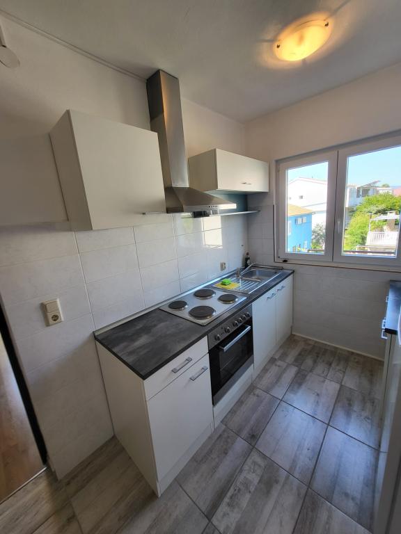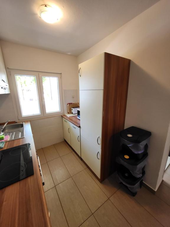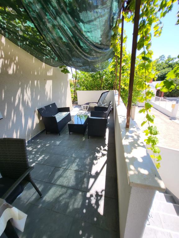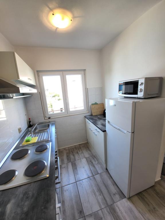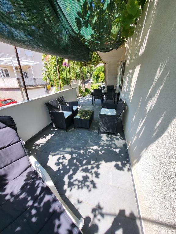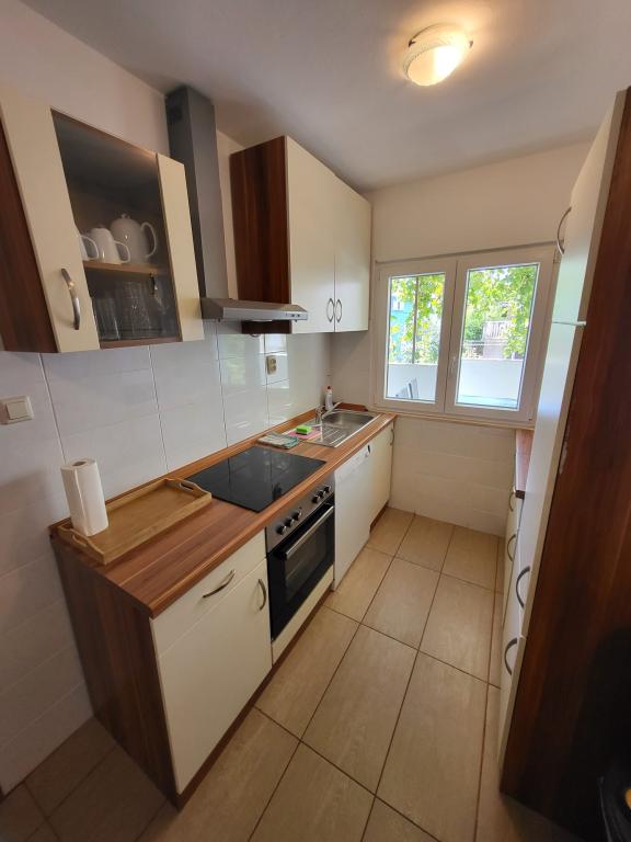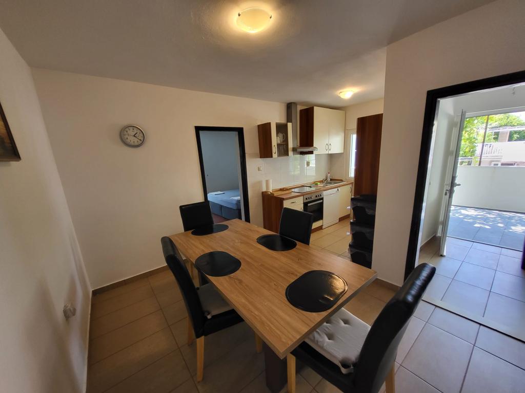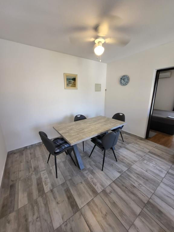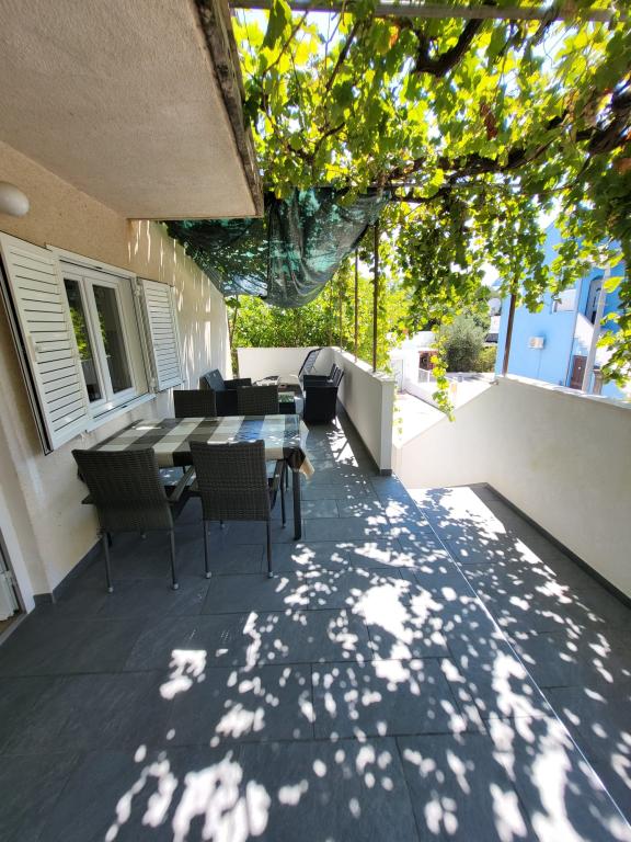 Znajdujemy się w samym centrum Orebića, a wszystkie niezbędne udogodnienia są w zasięgu spaceru. Plaża jest oddalona o zaledwie kilka minut spacerem. W odległości 50 metrów znajduje się sklep, piekarnia, apteka, kawiarnia i bar szybkiej obsługi. W pobliżu znajdują się również inne udogodnienia, takie jak restauracje i inne atrakcje. Ten obiekt z ogrodem oferuje klimatyzowane zakwaterowanie z balkonem i tarasem oraz widokiem na morze. Apartament oferuje bezpłatny parking, klimatyzację, telewizję satelitarną i Wi-Fi. Posiada również w pełni wyposażoną kuchnię ze wszystkimi niezbędnymi akcesoriami. Dom położony jest przy cichej ulicy, z widokiem na morze, ogród i ulicę. Apartament AP1 (ID: 71816): Powierzchnia apartamentu wynosi 61 m² + taras 16 m² + balkon 7 m². Apartament posiada łazienkę, 2 sypialnie, jadalnię i kuchnię. Apartament AP2 (ID: 71815): Powierzchnia apartamentu wynosi 61 m² + taras 4 m² + balkon 7 m². Taras i balkon są zadaszone markizami zapewniającymi niezbędny cień i wyposażone w meble ogrodowe. Apartament obejmuje łazienkę, 2 sypialnie, jadalnię i kuchnię.