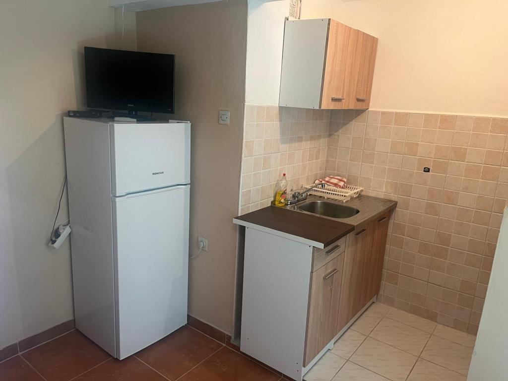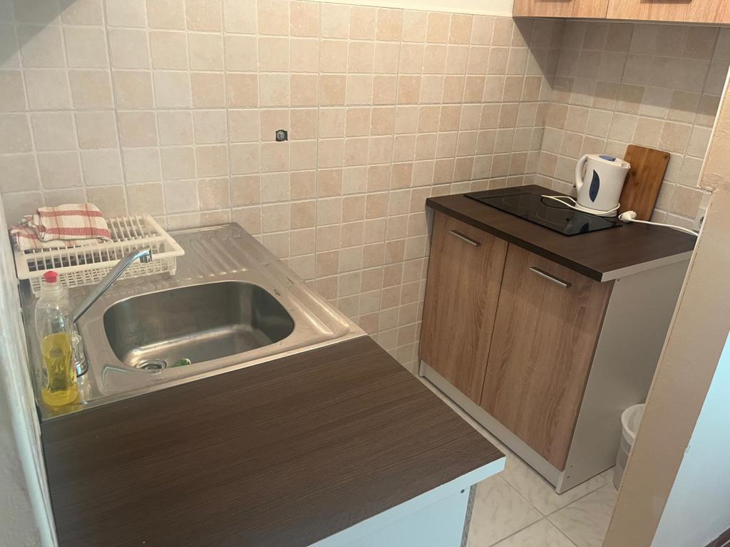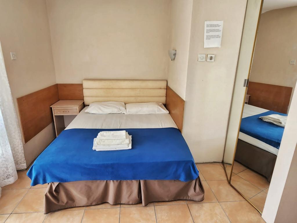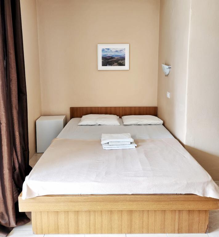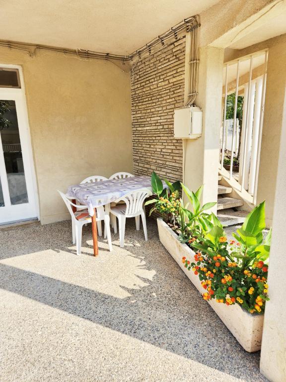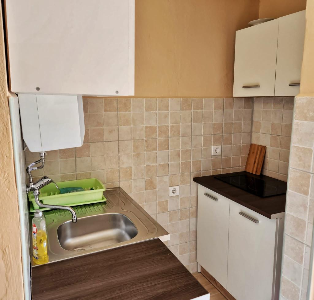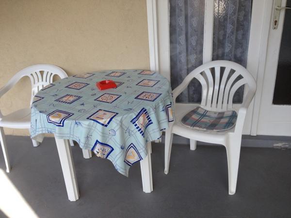 Cenowo przystępne mieszkania (35 € noc dla 4 osób w poza sezonem i 45 EUR nocleg dla 4 osób w sezonie), 20 m od morza. Do mieszkania z dwoma balkonami i dwóch pokoi dwuosobowych pochodzi z zewnętrznej korytarzu. Z jedną sypialnią jest wpisana w łazience, a inne w kuchni. Ciepła woda jest otrzymywany od urządzenia słonecznego. Parking dla samochodów na podwórku.