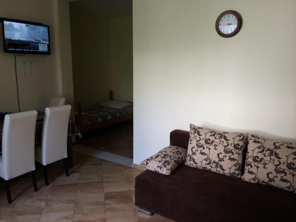 Apartamenty są nowo urządzone i nowocześnie wyposażone w wysokiej jakości telewizory i szybkie łącze internetowe. W bezpośrednim sąsiedztwie (mniej niż 50 metrów) znajduje się supermarket, biały sklep, sklep tekstylny, piekarnia, kawiarnia, restauracja, boisko do piłki nożnej, autobus, przystanek autobusowy. Obiekt położony jest 150 metrów od głównej piaszczystej plaży. Główna promenada nad morzem znajduje się 100 metrów od obiektu.