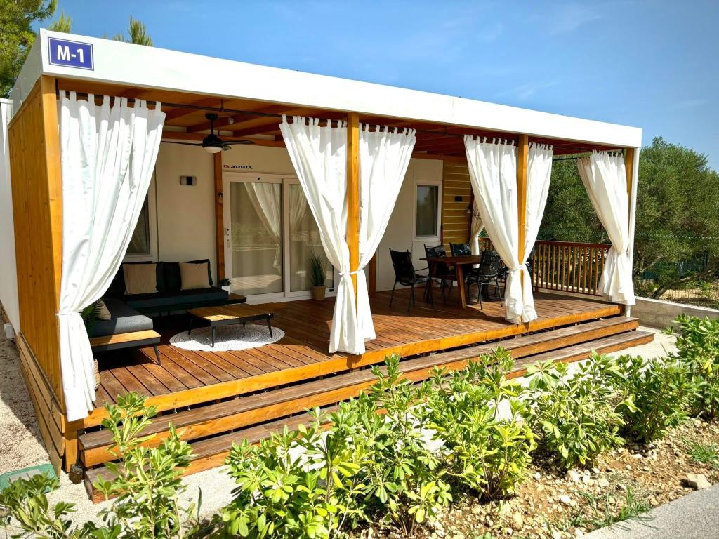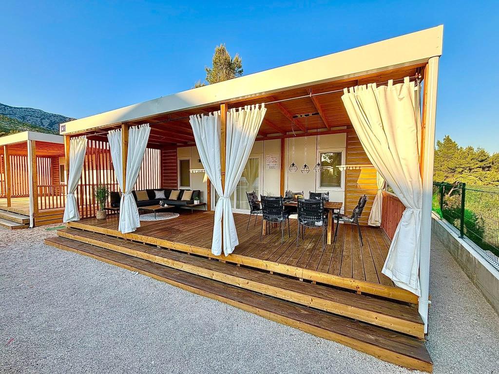 Odkryj nowy, nowoczesny dom mobilny w stylu śródziemnomorskim, położony w małym dalmatyńskim miasteczku Orebić (Camp „Dalmata”), otoczony dziewiczą przyrodą i złotymi plażami, z licznymi restauracjami i winiarniami oferującymi wyśmienitą kuchnię i słynne wina. Zrelaksuj się na 30-metrowym tarasie, zaledwie kilka kroków od basenu, wyposażonym w leżaki, część wypoczynkową na świeżym powietrzu i wszystko, czego potrzebujesz, aby zaspokoić swoje hedonistyczne pragnienia.