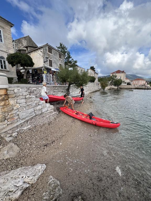 86 KROKÓW do plaży – zejdź po kamiennych schodach, pośród drzew oliwnych i cytrynowych, z widokiem na błękitne morze – miłośnicy plaż będą zachwyceni. WYCIECZKI Korčula, Mljet i okoliczne wyspy są w zasięgu ręki (port w Orebiću oddalony jest zaledwie o 250 m). Delektuj się smakami kuchni śródziemnomorskiej i włoskiego Dolce Vita (wszystko w promieniu 300 metrów). BEZPŁATNIE: kajaki morskie, deski SUP, parasole i maty plażowe. WITAMY w samym centrum OREBIĆ i nie przegap okazji na idealne wakacje. A PONIEWAŻ ZDJĘCIA MÓWIĄ WIĘCEJ NIŻ SŁOWA – SPÓJRZ NA NIE I OCEŃ SAM. - Zakwaterowanie - W pełni klimatyzowane - Wi-Fi - SAT-TV - Kuchnia - Łazienka z prysznicem - Prywatny parking - Balkony z markizami chroniącymi przed słońcem - Pościel i ręczniki GRILL Nasz obszar do grillowania i taras ogrodowy otoczony drzewami cytrynowymi jest w pełni wyposażony i stanowi świetne miejsce do przygotowania grillowanej ryby lub mięsa.