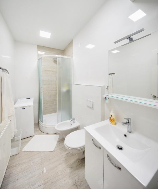 Apartamenty wyposażone są we wszystkie niezbędne sprzęty, aby Państwa pobyt był jak najbardziej przyjemny. W salonie jest klimatyzacja, telewizja kablowa i bezprzewodowy Internet. Kuchnia wyposażona jest w kuchenkę z okapem i piekarnikiem, zmywarkę, lodówkę, kuchenkę mikrofalową, ekspres do kawy, podgrzewacz wody, toster i wszystkie niezbędne przybory kuchenne. W łazience masz do dyspozycji suszarkę do włosów, ręczniki i akcesoria kąpielowe. W razie potrzeby można skorzystać z pralki, deski do prasowania i żelazka. Na życzenie można przygotować dodatkowe krzesełko i łóżeczko dla małych dzieci. Wchodząc do apartamentu stajesz się jego użytkownikiem, a wszystkie Twoje uwagi są dla nas cenne, ponieważ przyczyniają się do zadowolenia kolejnych gości. Zwłaszcza jeśli wystąpiła awaria sprzętu, urządzeń lub jakaś awaria w przechowywaniu. Prosimy o niezwłoczne powiadomienie nas o tym, aby mieć pewność, że są Państwo zadowoleni z naszych usług i pobytu w apartamencie tak szybko, jak to możliwe.