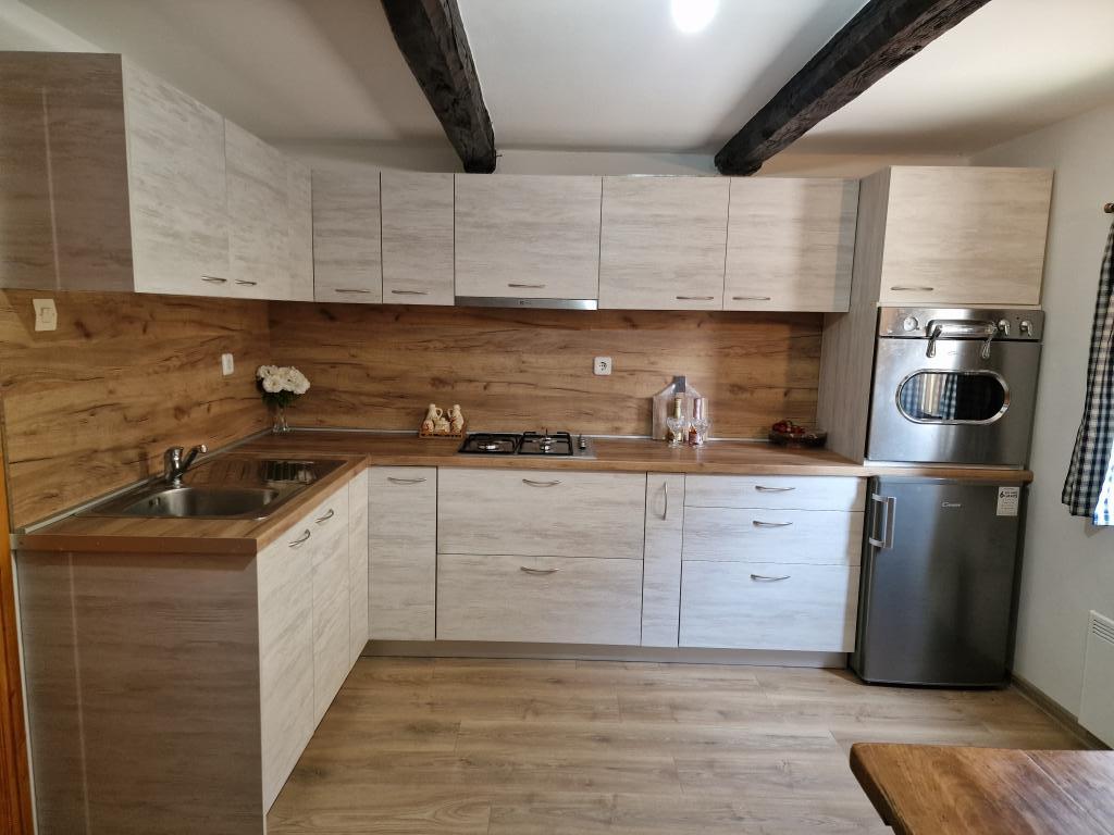 Rodzimy dom letniskowy z 1857 roku. został odrestaurowany, aby zapewnić idylliczny wypoczynek i radość naszym drogim gościom. Znajduje się w małej wiosce Vuketić, w dziewiczej przyrodzie, na wzgórzu, gdzie przeplatają się spokój, cisza, zielony las i winnice. Dom może pomieścić 4+2 gości. Na parterze znajduje się salon, jadalnia oraz łazienka z częścią środkową i odrestaurowanym piecem chlebowym. Na pierwszym piętrze znajdują się 2 sypialnie, a w zielonym ogrodzie domu można grillować i cieszyć się przyrodą. Znajduje się na granicy ze Słowenią w Parku Przyrody Žumberačka-Samoborsko Gorje, 11 km od Metlika (SLO), 14 km od Ozlje i 24 km od szczytu Sveta Gera - 1178 m n.p.m. oznacza najwyższy szczyt Žumberačka gora . Tylko 2 km od domu znajduje się centralna wieś Vivodina z kościołem św. Lovry jako zabytkiem. Region słynie z uprawy winorośli i winiarstwa, obfituje w doskonałe i wielokrotnie nagradzane wina, ale także w gastronomiczny przysmak, jakim jest jagnięcina na rożnie, serwowany przez znanego restauratora rodziny Frlan.