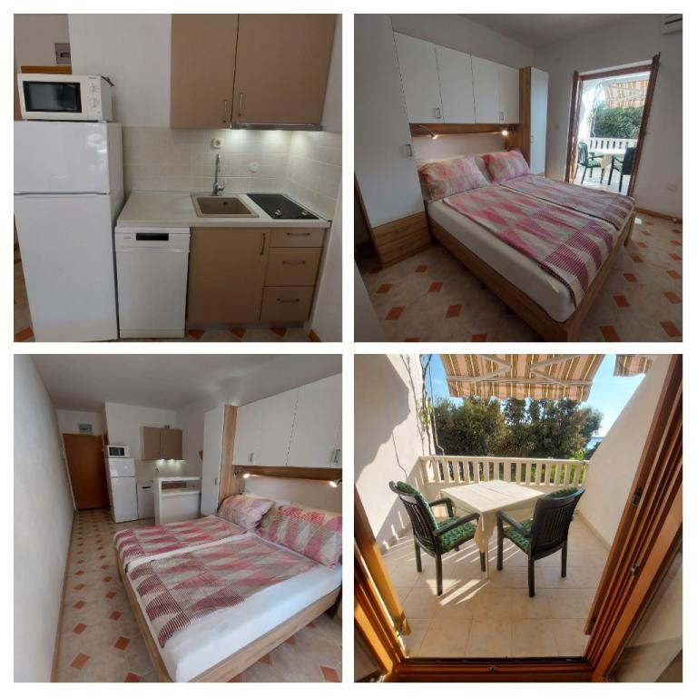 W pełni umeblowane apartamenty w domu nad morzem. Apartamenty znajdują się zaledwie 20 m od plaży i 5 minut spacerem wzdłuż wybrzeża do miasta i portu Mandre. Dom posiada idealne zakwaterowanie, zaledwie 20 m od morza. Ssvi apartamenty posiadają tarasy z widokiem na morze.