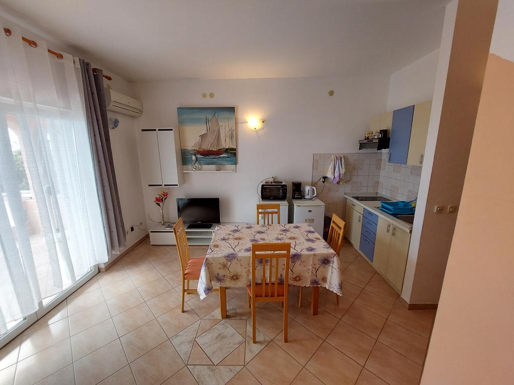 Apartamenty znajdują się w pierwszym rzędzie od morza. Mandre zdobi długa promenada wzdłuż morza ze wszystkimi niezbędnymi udogodnieniami. Plaże przed domem są ceglane, żwirowe i piaszczyste. Obiekt znajduje się 5 minut spacerem od centrum i 10 minut spacerem od sklepów. Dostępne są miejsca parkingowe.