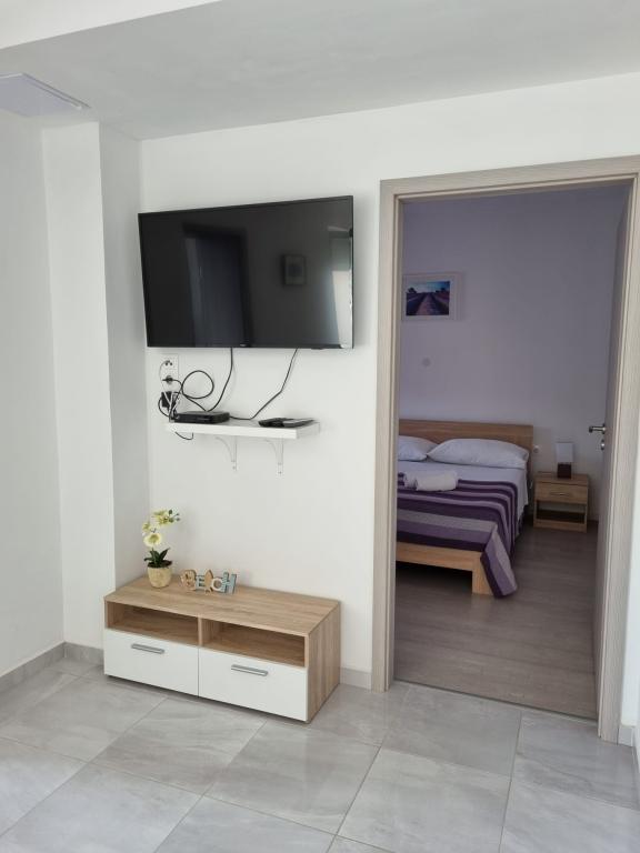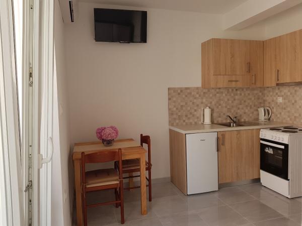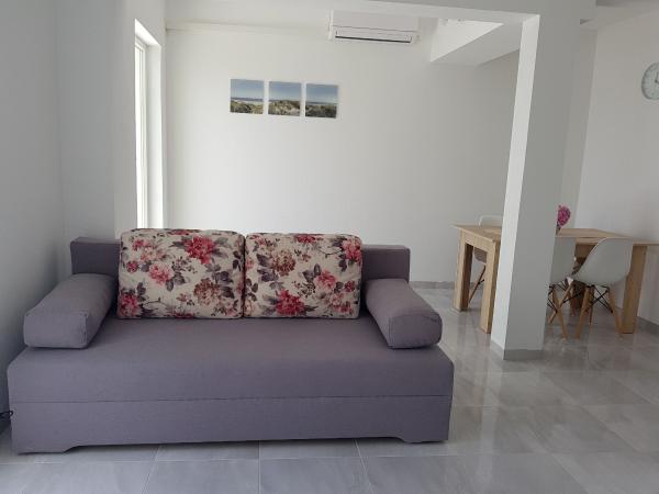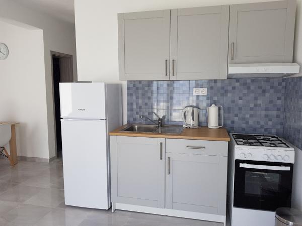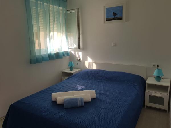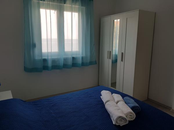 Nasze apartamenty zlokalizowane są nad morzem, w centrum Mandri, na wyspie Pag. Wszystkie apartamenty znajdują się na 1. piętrze naszego rodzinnego domu, dzięki czemu oferują piękny widok na morze. Apartamenty są świeżo wyremontowane i wyposażone w internet, klimatyzację, TV/SAT, w pełni wyposażoną kuchnię, a dodatkowo istnieje możliwość opuszczenia moskitier na wszystkich oknach wraz z roletami, jako ochrona przed komarami. Każdy apartament posiada własne miejsce parkingowe, a wszyscy goście mogą korzystać z grilla w ogrodzie. Przez nasze podwórko wychodzi się bezpośrednio na plażę, więc do przyjemnego wypoczynku w słońcu wystarczy ręcznik na ramieniu! Nie możemy się doczekać Twojego przyjazdu!