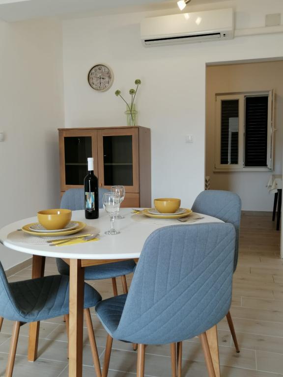 Drodzy Goście, Apartamenty znajdują się w domu w spokojnej okolicy miasta Pag. Dom znajduje się w pierwszym rzędzie od morza, zaledwie 20 metrów od plaży i 900 metrów od centrum. Są one idealne dla rodzin z dziećmi. Oferujemy dwa apartamenty: dla 2 osób (A2) i 4 osób (A4). Apartamenty wyposażone są w klimatyzację, bezpłatne Wi-Fi i telewizję satelitarną. Każdy apartament ma osobne wejście. Przed domem znajduje się bezpłatny parking z naturalnym zacienieniem. Zwierzęta nie są akceptowane.