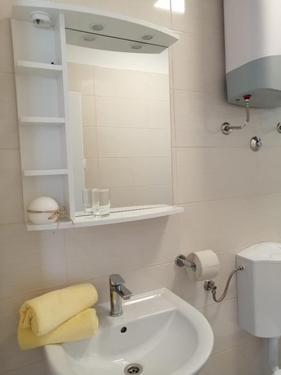 Mieszkaliśmy w apartamencie A4. Bardzo przestronne, nowocześnie urządzone i dobrze wyposażone! Bliskość morza sprawia, że każdy, kto lubi o każdej porze wrócić do domu, wypić kawę i zimny napój, wygrzewać się na słońcu i ugotować obiad, będzie mógł tu odpocząć. Nie musisz jeździć samochodem codziennie, bo wszystko jest bardzo blisko, a do dyspozycji gości jest zacienione miejsce parkingowe. Pani jest bardzo miła, przystępna i bezpośrednia. Polecam apartament całym sercem, na przykład osobom z małymi dziećmi, które można od razu położyć spać, plaża z drobnymi kamyczkami i piaskiem, czysta!! Cała ta część wyspy Pag jest spokojna i cicha... polecamy!