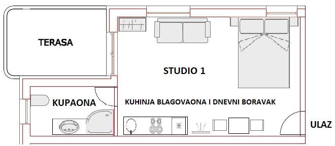 Studio czyściutkie i zadbane. Wszystko czego potrzebowałam w kuchni znajodowao się w wyposażeniu. Bardzo mili gospodarze. Blisko jest do morza i centrum Pagu żeby wyjść wieczorem. Studio niby 2 pokojowe ale jakby ktoś wybierał się z dzieckiem to też bez problemu może zarezerwować. Gorąco polecam.