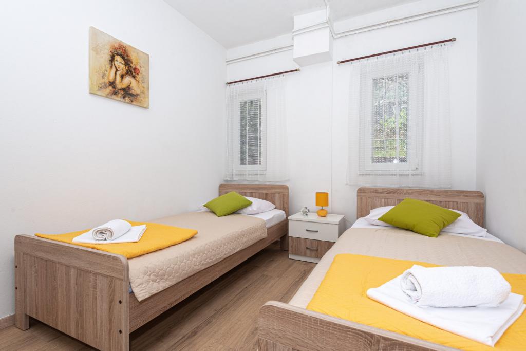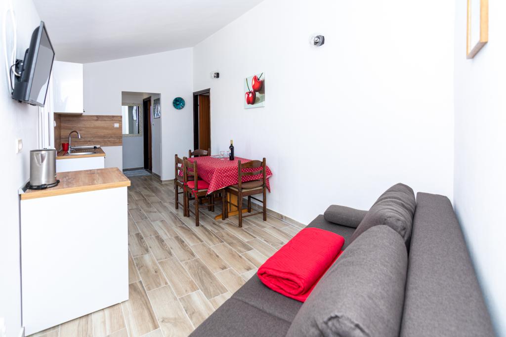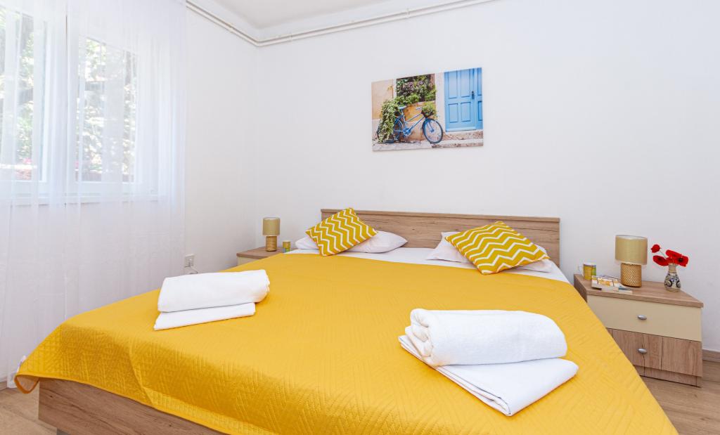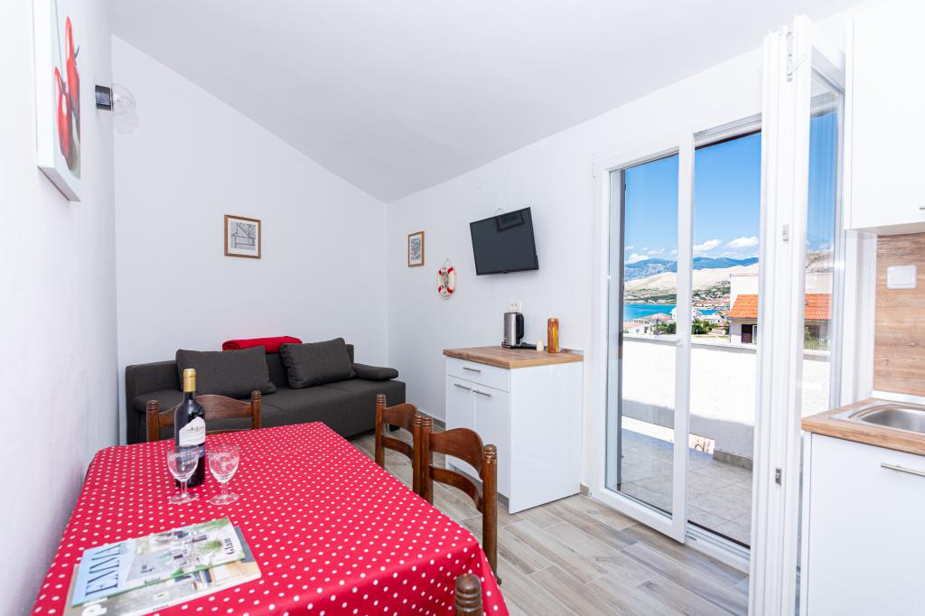 Apartamenty znajdują się w miejscowości Pag w obszarze Lokunja, zaledwie 200 metrów od morza i 300 metrów od głównej plaży. Do centrum miasta, gdzie znajdują się sklepy, poczta, kawiarnie i bary, można dojść w niecałe 10 minut. Tylko 25 km od Novalji-Zrć i 50 km od Zadaru. Ten dom ma 4 jednostki zakwaterowania. W jednym z nich mieszkają właściciele domu (Ivo i Jelica) i są do Państwa dyspozycji. Jeden apartament znajduje się na pierwszym piętrze domu i posiada balkon z pięknym widokiem na morze. Na parterze domu znajdują się jeszcze dwa apartamenty z tarasami. Dom posiada duże podwórko, ogród i strzeżone miejsce parkingowe, a także możliwość grillowania. Powitanie.