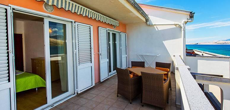 Bardzo duży przestronny wygodny apartament w bezpośrednim zejściem do morza!! Dwa tarasy. Leżaki, parasole, klimatyzacja , duży parking, grill, za rogiem piekarnia i warzywniak. SUPER!!