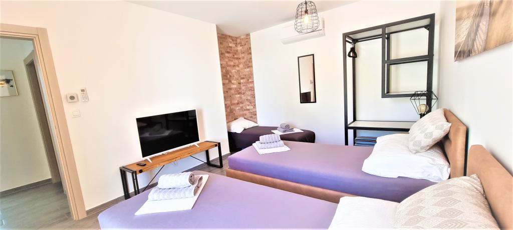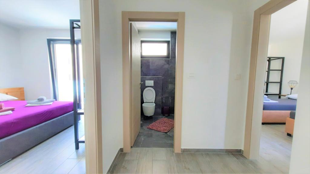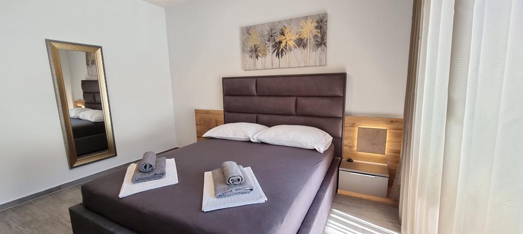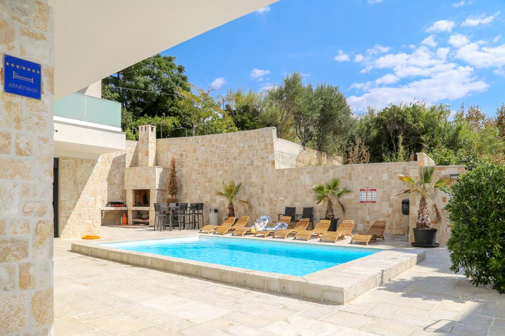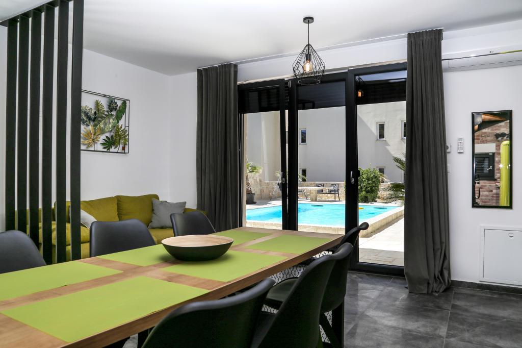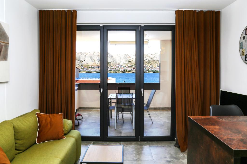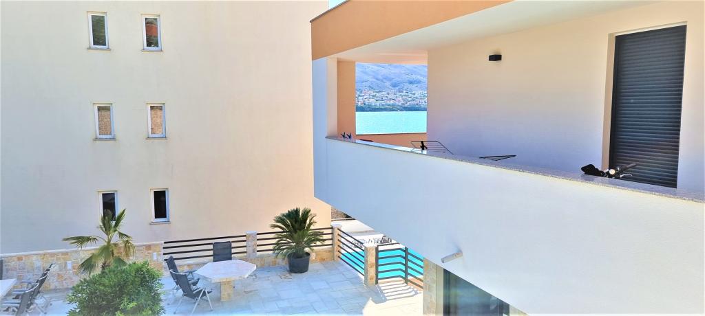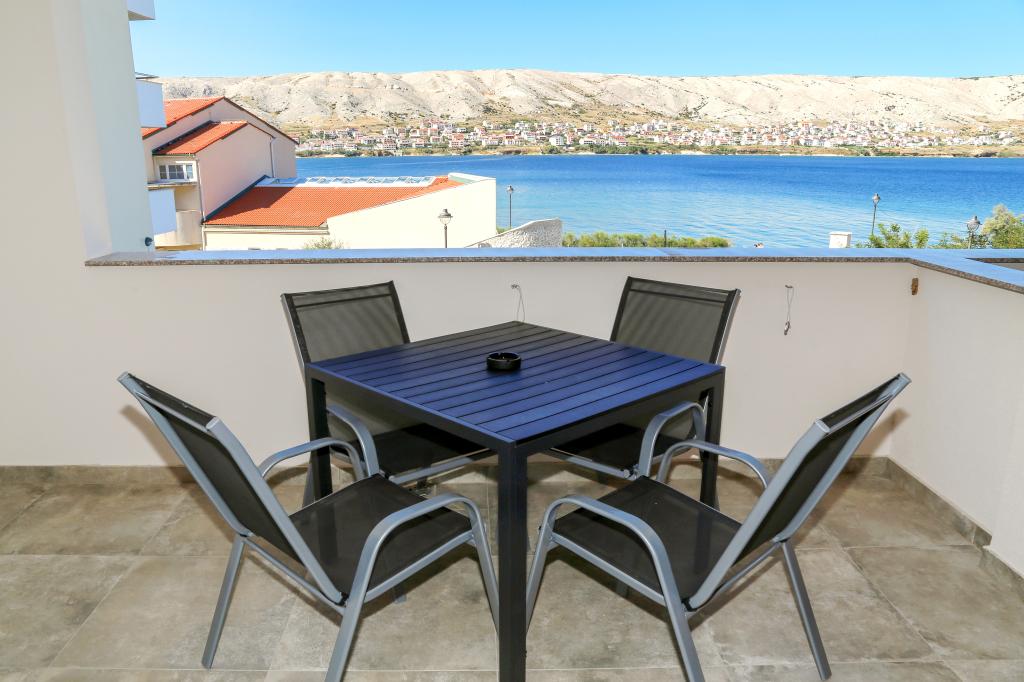Nowoczesna willa apartamentowa z basenem w pierwszym rzędzie do morza, 400 m od centrum Pag - spacer nad morzem. Pojemność zakwaterowania to 6 apartamentów o różnej wielkości i wnętrzu. Apartamenty są klimatyzowane i nowocześnie wyposażone, z przestronnymi tarasami i widokiem na morze.