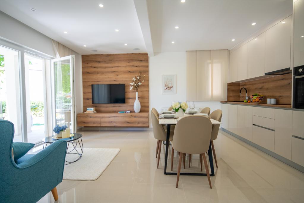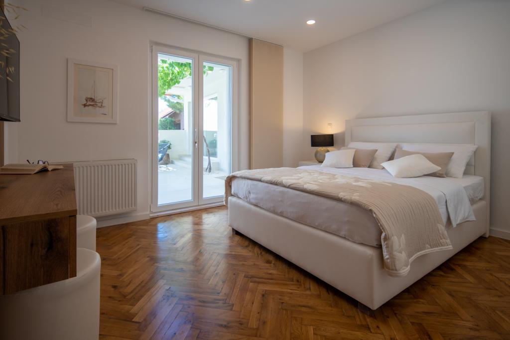 Nowoczesny i nowocześnie wyposażony apartament GARDEN znajduje się na parterze budynku i oferuje swoim gościom, którzy są jednocześnie jedynymi gośćmi budynku, wypoczynek w oazie zieleni z dużym ogrodem i grillem. Mieszkanie ma 3 sypialnie z łóżkiem małżeńskim, gdzie każdy pokój ma własną łazienkę i telewizor, w pełni wyposażoną kuchnię, pokój dzienny i dwa tarasy. To jest 10 minut od centrum miasta i plaż na piechotę. Mieszkanie jest idealną bazą wypadową do odkrywania bogatych możliwości, jakie oferuje ta destynacja.