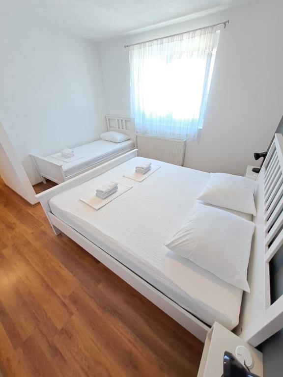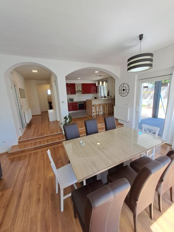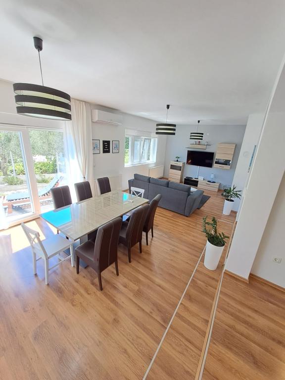 Mieszkanie z prywatnym podwórkiem „Meri” znajduje się w Pakoštani; w idealnej pozycji; ponieważ znajduje się dokładnie pośrodku pomiędzy morzem a jeziorem PP Vrana, podobnie jak pośrodku pomiędzy pięknymi miastami Zadar i Šibenik. Budynek z ogrodem i dziedzińcem od strony słońca emanuje prywatnością i spokojem. Zaprasza do odpoczynku i przyjemnego towarzystwa. Zawiera 3 sypialnie, duży salon z telewizją satelitarną, w pełni wyposażoną kuchnię; jadalnia i 2 łazienki z prysznicem lub wanną. Klimatyzowane apartamenty z tarasem, grillem, placem zabaw dla dzieci, prywatnym parkingiem i Wi-Fi. Niezależnie od tego, czy pragniesz odpoczynku od codzienności i urbanizacji, czy też aktywnego wypoczynku sportowego, codziennych wycieczek po NP, PP, miejscach historycznych, poczujesz się tu, jakbyś był we właściwym miejscu. Czekamy na Ciebie!