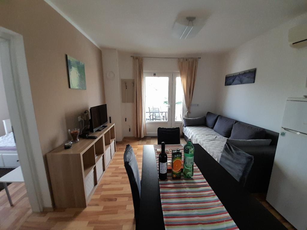 W pełni wyposażone 3 pokojowe mieszkanie w spokojnej okolicy. Duży taras i balkon z widokiem na morze. Możliwość korzystania z grilla w ogrodzie. Bezpieczne miejsce parkingowe w cieniu.