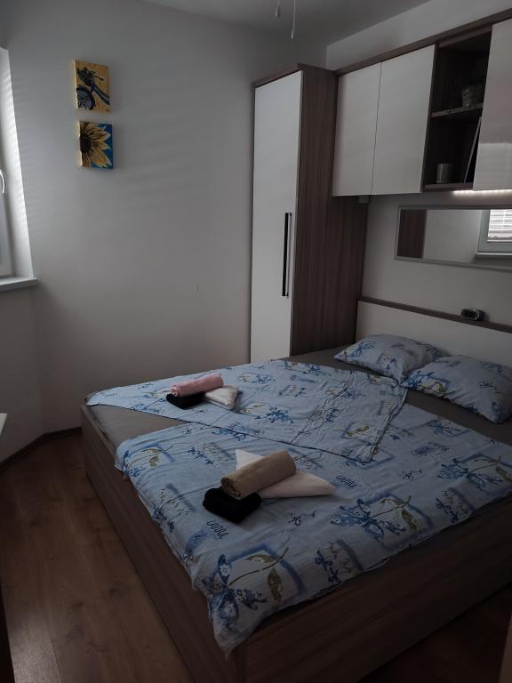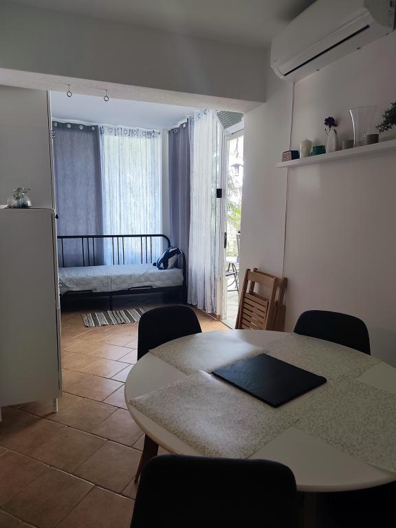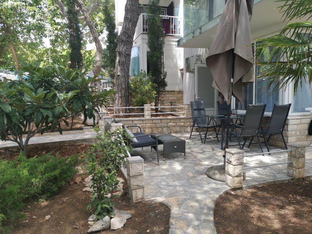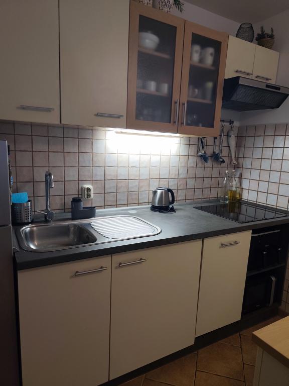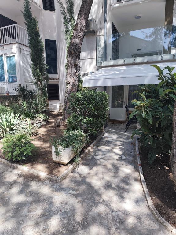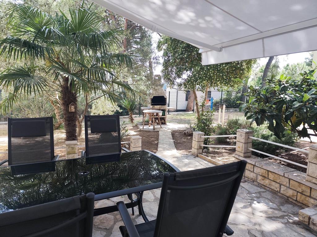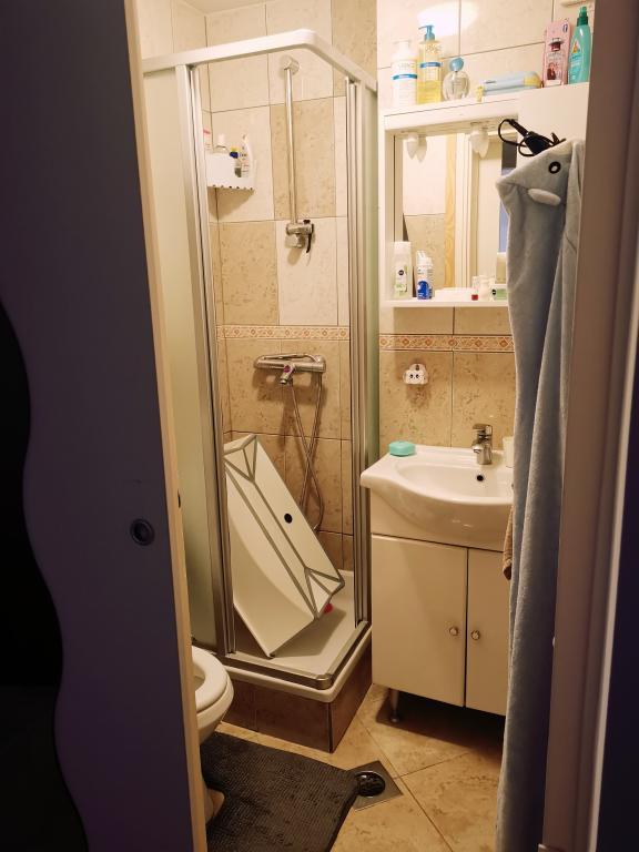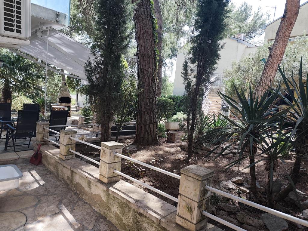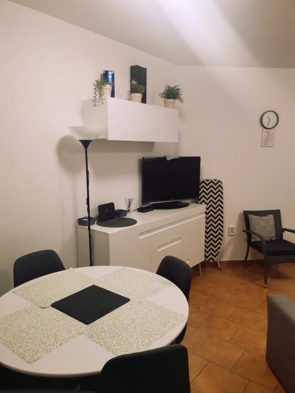 Romantyczny i ciepły apartament dla rodziny w cichej ślepej uliczce. Malownicze, śródziemnomorskie otoczenie tarasu to ukojenie dla duszy i ciała. Apartament znajduje się w budynku na zamkniętym osiedlu. Posiada piękny, 20-metrowy taras, na którym można spędzać lato, dniem i nocą, przy dźwiękach świerszczy. Taras wyposażony jest w stół z 6 krzesłami i wygodny zestaw mebli oraz grill opalany drewnem lub węglem drzewnym. Wnętrze składa się z sypialni z łóżkiem małżeńskim, loggii z łóżkiem 160x200, a w razie potrzeby również łóżeczka dziecięcego. Łazienka wyposażona jest w kabinę prysznicową i wszystkie niezbędne akcesoria, a z małego przedpokoju przechodzi się do otwartego salonu z jadalnią i kuchnią. Kuchnia wyposażona jest we wszystkie sprzęty AGD ułatwiające życie (zmywarka, pralka, podgrzewacz wody, lodówka z zamrażalnikiem, kuchenka mikrofalowa, mikser ręczny i klasyczny, frytkownica powietrzna), a także w pierwszą dostawkę, pełniącą funkcję dwuosobowego łóżka przed telewizorem. Do dyspozycji Gości jest kilka szaf. Stół jadalny składa się z 4 krzeseł z dwoma dodatkowymi