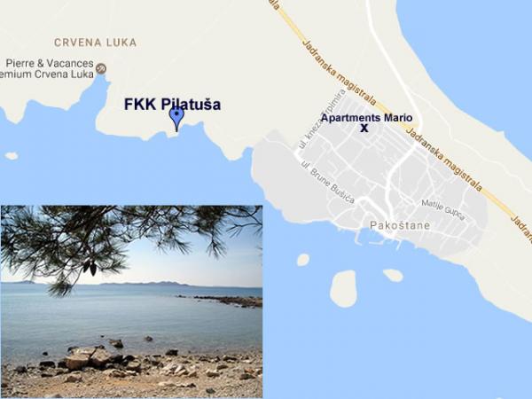 Apartament Mario znajduje się w rodzinnym domu i jest otoczony zielenią. Apartamenty wychodzą na morze, więc z tarasu roztacza się wspaniały widok na Kornati. Ze względu na swoje idealne położenie, znajdują się 900 metrów od morza i jeziora Vransko, co daje niepowtarzalną okazję do kąpieli w morzu lub jeziorze tego samego dnia. Oferujemy doskonałe zakwaterowanie dla wszystkich gości naturystów, którzy mogą pływać na plaży FKK Pilatuša. Dla naszych gości udostępniliśmy duży parking, a dodatkowe udogodnienia: drink powitalny, duży grill, dodatkowe prysznice na świeżym powietrzu, ogrodzony dziedziniec odpowiedni dla małych dzieci itp. Dla wszystkich naszych gości, którzy są rowerzystami, mamy idealny rower ścieżka wokół jeziora Vransko. Tylko 2,5 km dzieli nas od Fun Parku Mirnovec. , abyśmy mogli zapewnić Ci wysokiej jakości zakwaterowanie, gdy zdecydujesz się odwiedzić ten park