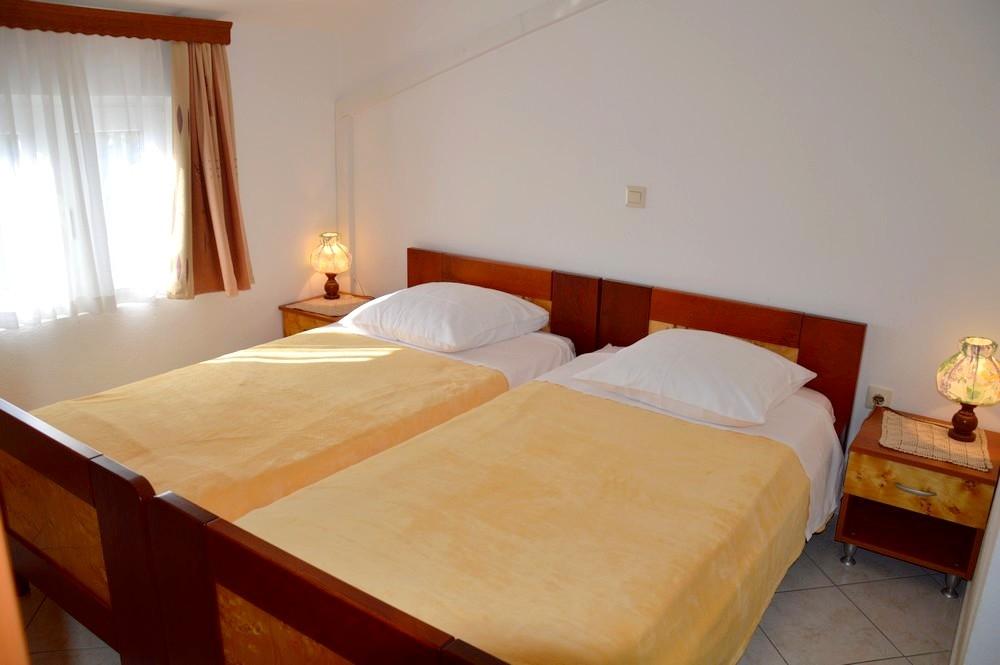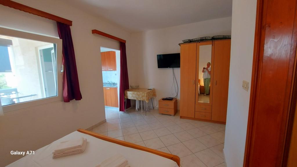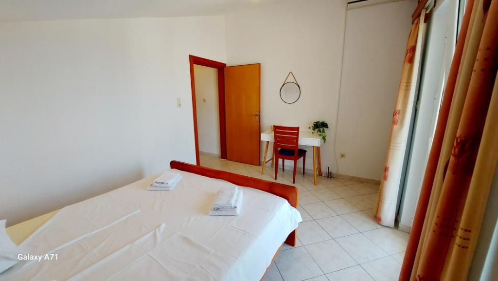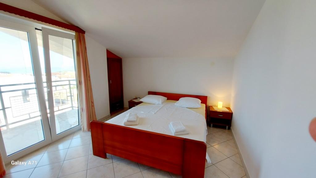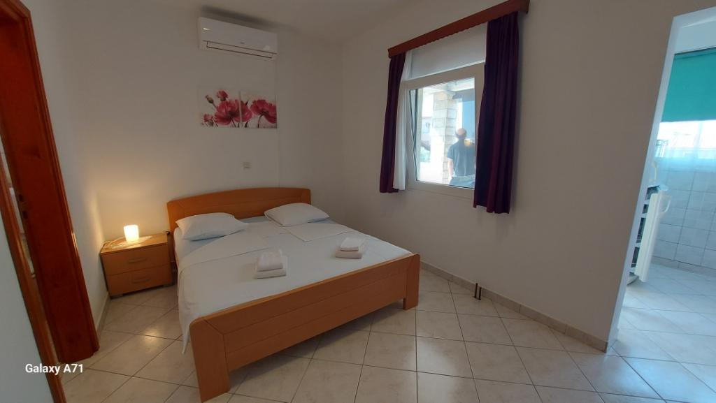 APARTAMENT 4 OSÓB posiada 2 sypialnie (duże łóżko i 2 małe łóżka) + 2 łazienki APARTAMENT 4+1 OSÓB posiada 2 sypialnie (duże łóżko i 2 małe łóżka) i 2 łazienki, APARTAMENT 2+2 OSÓB posiada 1 sypialnię (duże łóżko ) 1 łazienka, STUDIO 2-OSOBOWE posiada duże łóżko, kuchnia, łazienka Pralka dla wszystkich mieszkań na parterze. Ręczniki dostępne i zmieniane raz w tygodniu. Klimatyzacja i opłata klimatyczna wliczona w cenę. Wszystkie tarasy mają widok na morze.