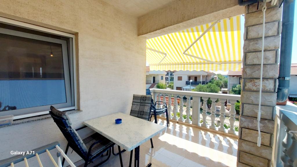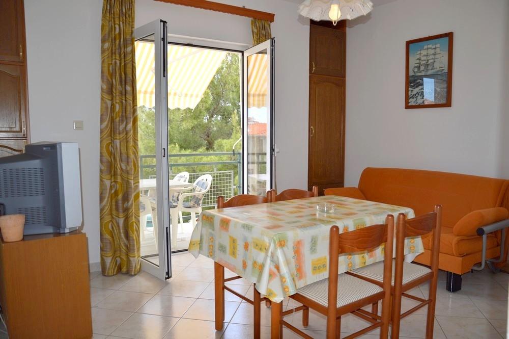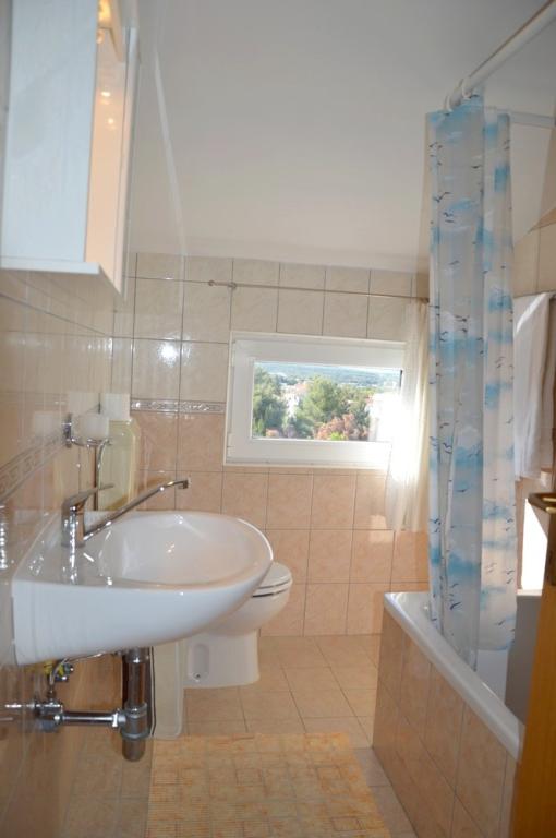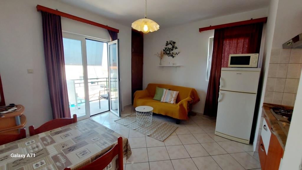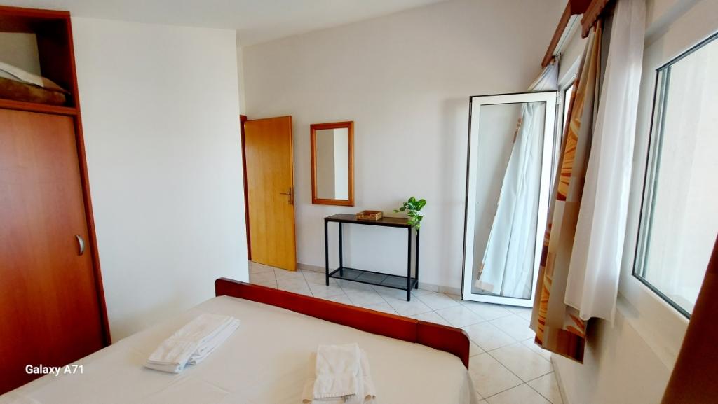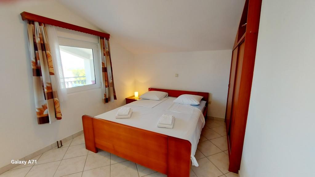 APARTAMENT 4 OSÓB posiada 2 sypialnie (duże łóżko i 2 małe łóżka) + 2 łazienki APARTAMENT 4+1 OSÓB posiada 2 sypialnie (duże łóżko i 2 małe łóżka) i 2 łazienki, APARTAMENT 2+2 OSÓB posiada 1 sypialnię (duże łóżko ) 1 łazienka, STUDIO 2-OSOBOWE posiada duże łóżko, kuchnia, łazienka Pralka dla wszystkich mieszkań na parterze. Ręczniki dostępne i zmieniane raz w tygodniu. Klimatyzacja i opłata klimatyczna wliczona w cenę. Wszystkie tarasy mają widok na morze.