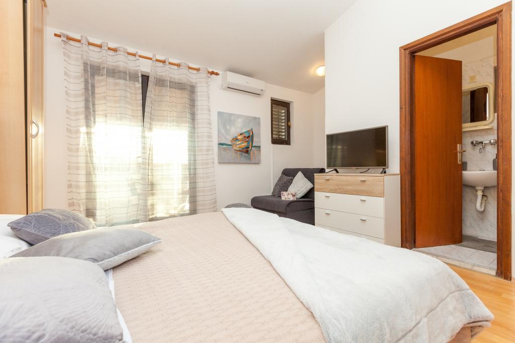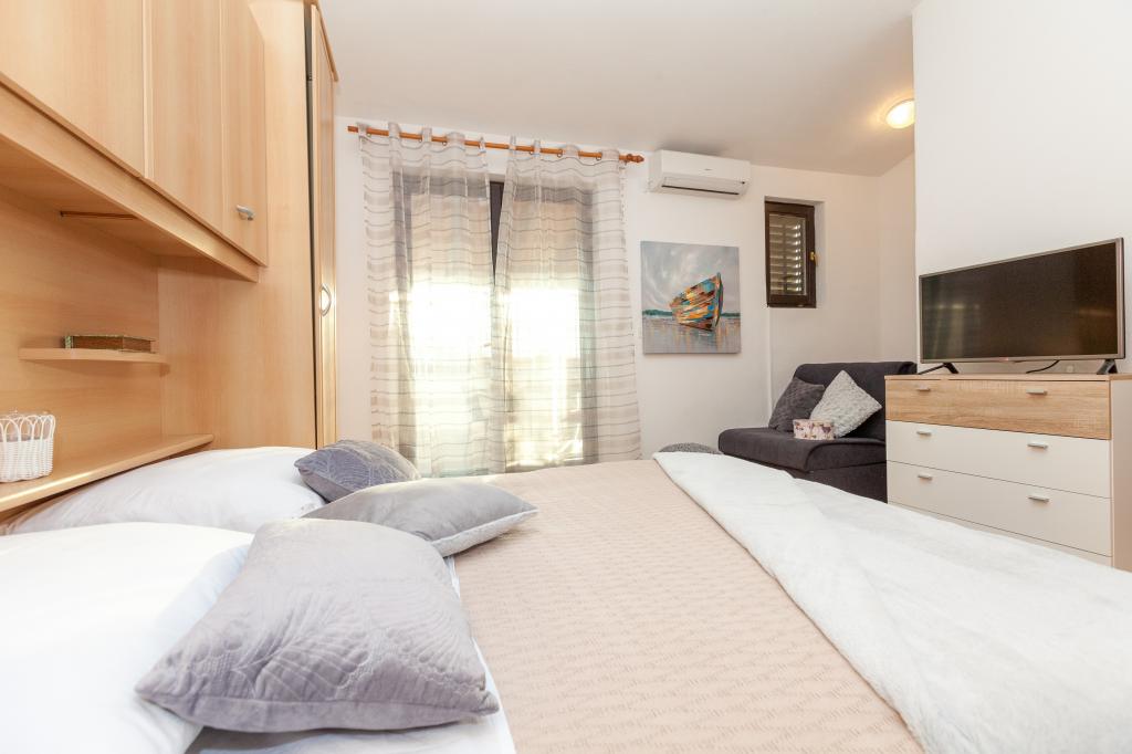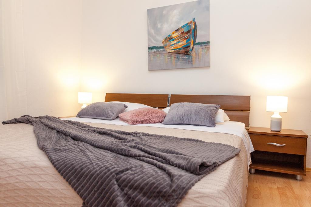 Witamy w Miro Apartments! Nasze apartamenty znajdują się w spokojnej części miasta, niedaleko centrum Pakoštane. Spacer do pięknej plaży i centrum zajmuje 5 minut. Zakwaterowanie jest schowane na ruchliwej ulicy, więc jeśli masz dzieci, możesz bez obaw cieszyć się naszym otoczeniem. Obok apartamentów w naszym dużym ogrodzie znajduje się kominek, w którym można przygotować pyszny posiłek. Obok kominka znajduje się ogród z warzywami bez przypraw (pomidory, ogórki, papryka ...). Przed mieszkaniem są zabezpieczone miejsca parkingowe. Gdziekolwiek się zatrzymasz, życzymy miłego i pięknego letniego dnia!