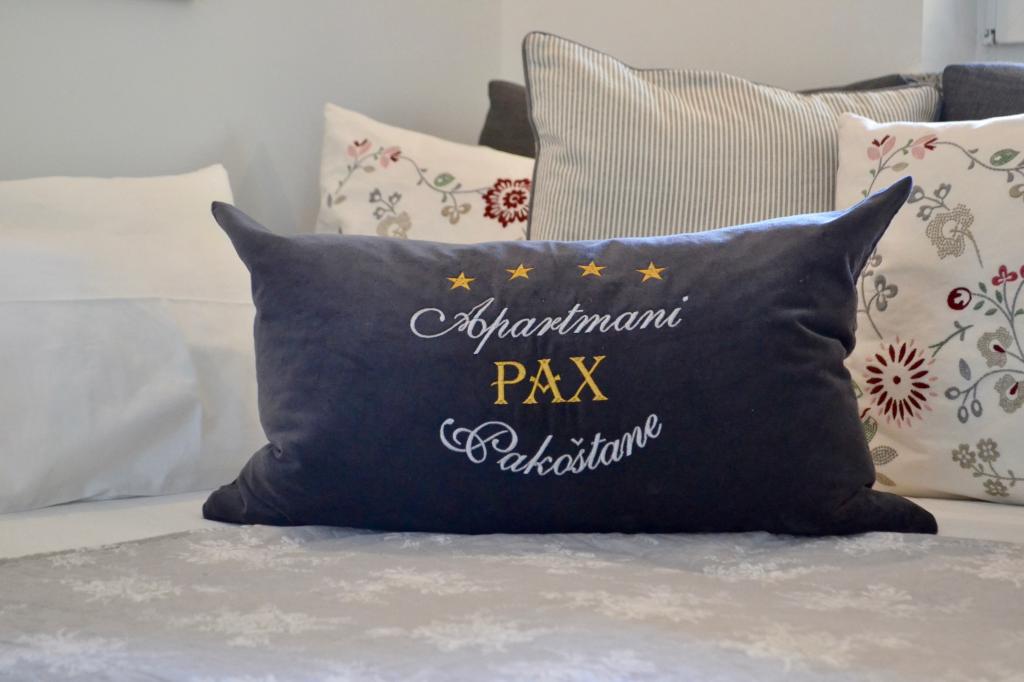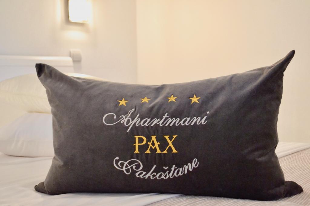 Apartamenty PAX zlokalizowane są w spokojnej części Pakostanu. Nowocześnie urządzone 4-gwiazdkowe apartamenty znajdują się na pierwszym piętrze i mają powierzchnię 68m² (z balkonem) i 48m² (z tarasem) z osobnym wejściem. Zawierają jedną sypialnię z dużym podwójnym łóżkiem, w pełni wyposażoną kuchnię, pokój dzienny z dodatkowym łóżkiem i łazienkę z prysznicem. Mają wszystko, czego potrzebuje nowoczesny apartament, aby zapewnić gościom jak najbardziej komfortowy pobyt w nim. Są one wyposażone w pościel, ręczniki, klimatyzację i sejf. Apartamenty wyposażone są w bezpłatny bezprzewodowy internet, telewizor LCD i programy satelitarne. Parking znajduje się na podwórzu domu. Dostępny jest także grill. Centrum, sklep, bank, restauracje i inne obiekty gastronomiczne i turystyczne, a także plaża znajdują się w odległości 5-10 minut spacerem od budynku. Park przyrody Jezioro Vranskie, największe naturalne jezioro w Chorwacji, znajduje się 10 minut od hotelu. Gospodarze mówią po chorwacku i niemiecku.
