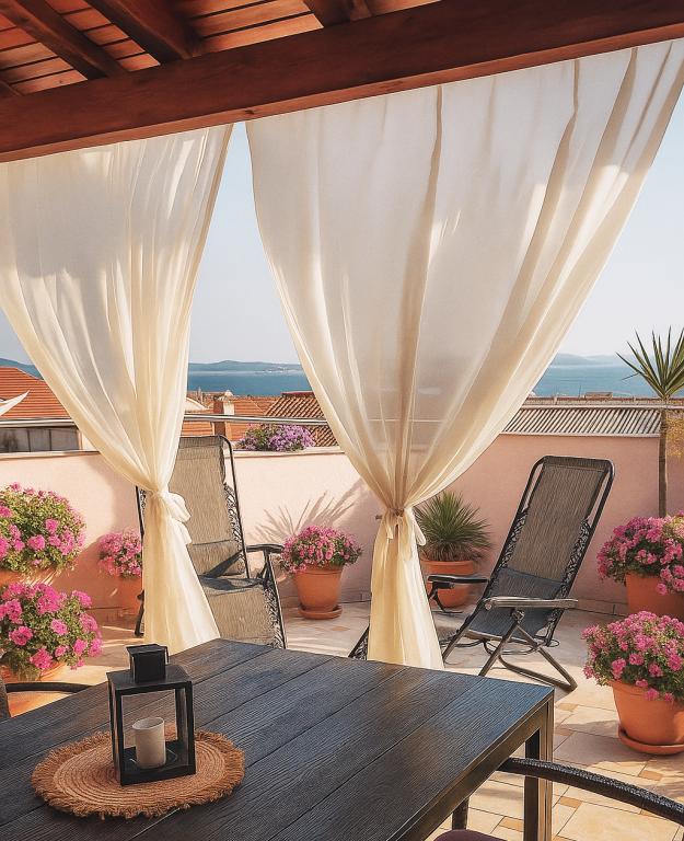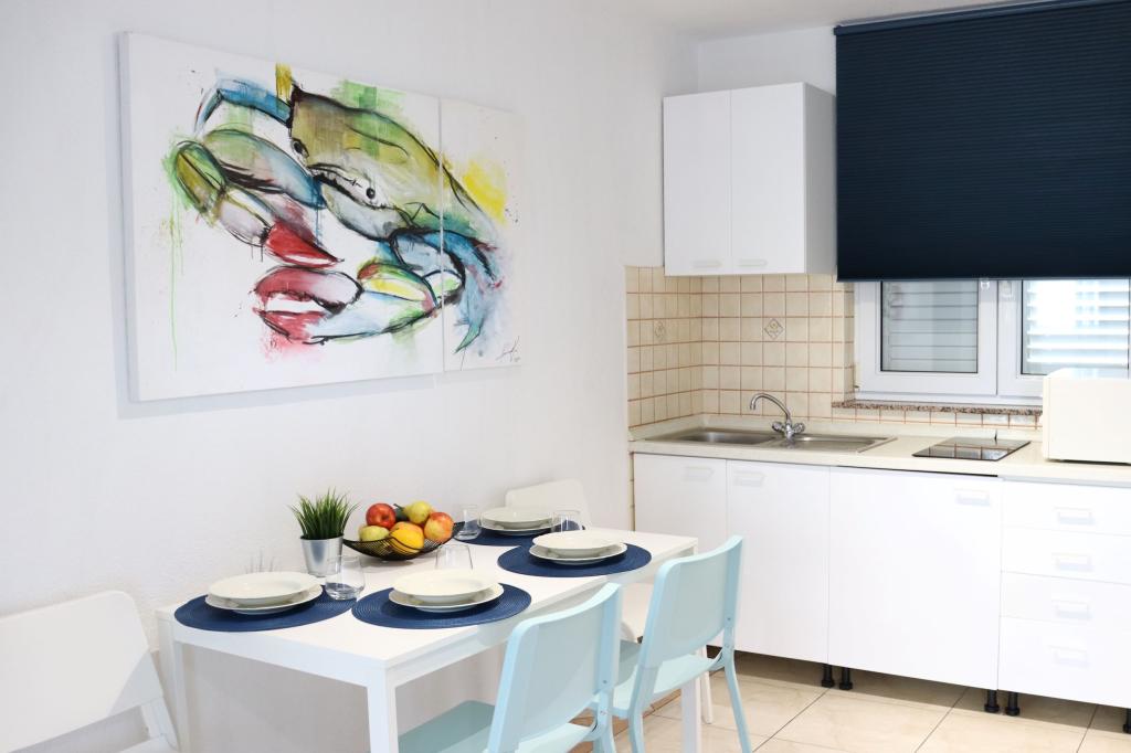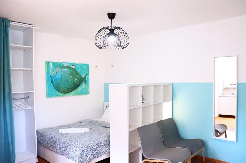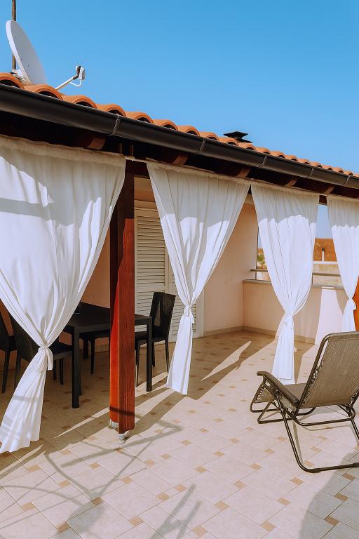 Apartament A4 jest bardzo ładny, przestronny, czysty z dużym tarasem z widokiem na morze i bardzo dobrze wyposażoną kuchnią. Pani domu miła i sympatyczna. Lokalizacja mieszkania jest w spokojnej okolicy, ale jednocześnie kilka kroków od morza, sklepów i restauracji. Dla rodzin z bardzo małymi dziećmi apartament nie jest najodpowiedniejszy, wejście po spiralnych schodach, a sypialnia z osobnymi łóżkami znajduje się na zewnątrz mieszkania z osobnym wejściem z tarasu, musieliśmy korzystać ze spania na kanapie, z której czego chciałem uniknąć, wybierając mieszkanie z kilkoma sypialniami. Ale dla innych mieszkanie będzie dobrym wyborem.