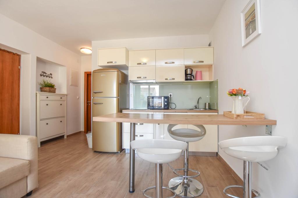 Apartamenty oferują idealne połączenie komfortu, spokoju i doskonałej lokalizacji w Pakoštane. Położone w spokojnej części miasta, są idealne dla rodzin, par i każdego, kto marzy o relaksującym wypoczynku nad morzem. Przestronne i schludne apartamenty wyposażone są we wszystko, czego potrzeba do przyjemnego pobytu, a gospodarze zawsze służą radą i rekomendacjami. Morze i plaża znajdują się w odległości krótkiego spaceru, podobnie jak restauracje, kawiarnie i sklepy.