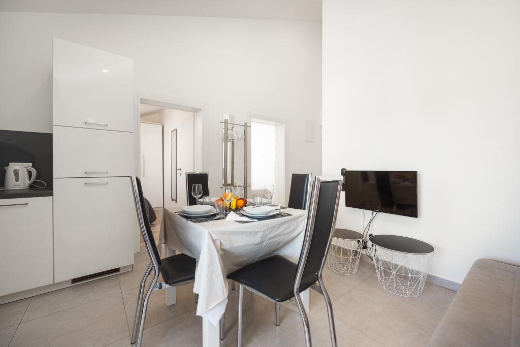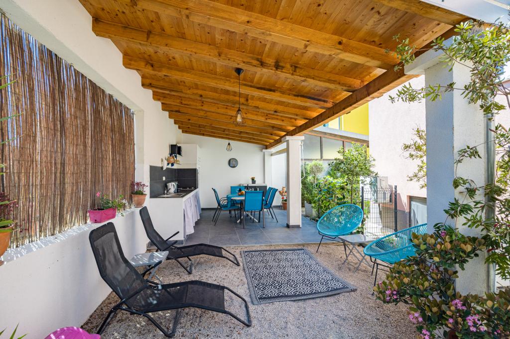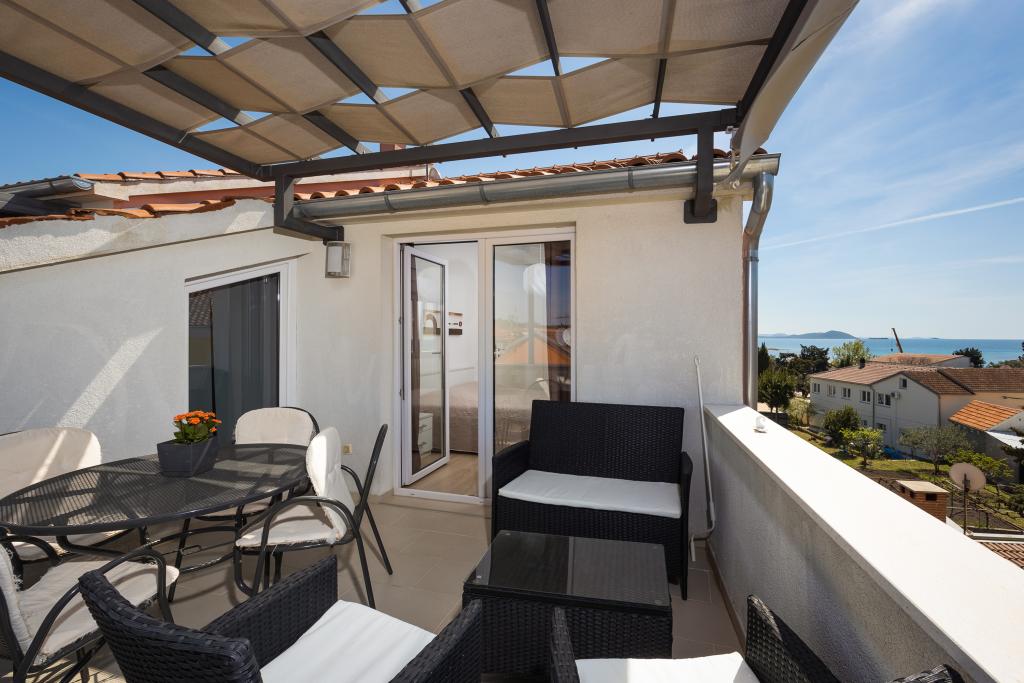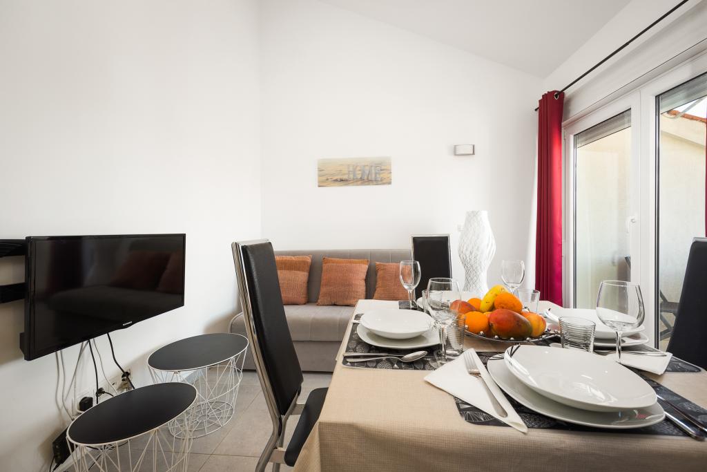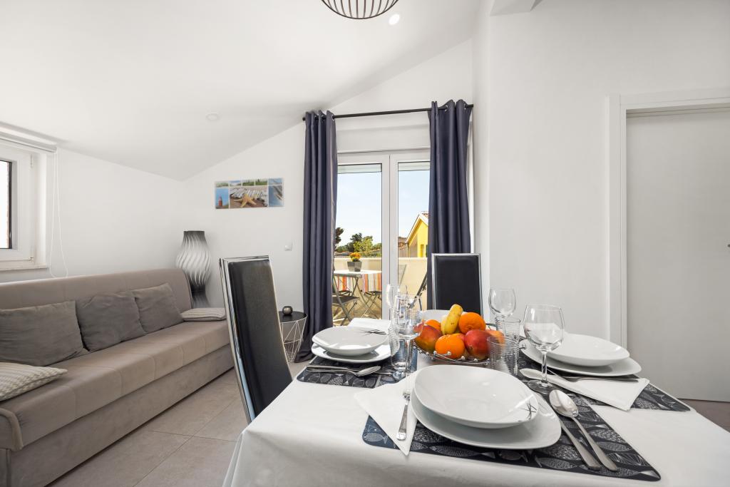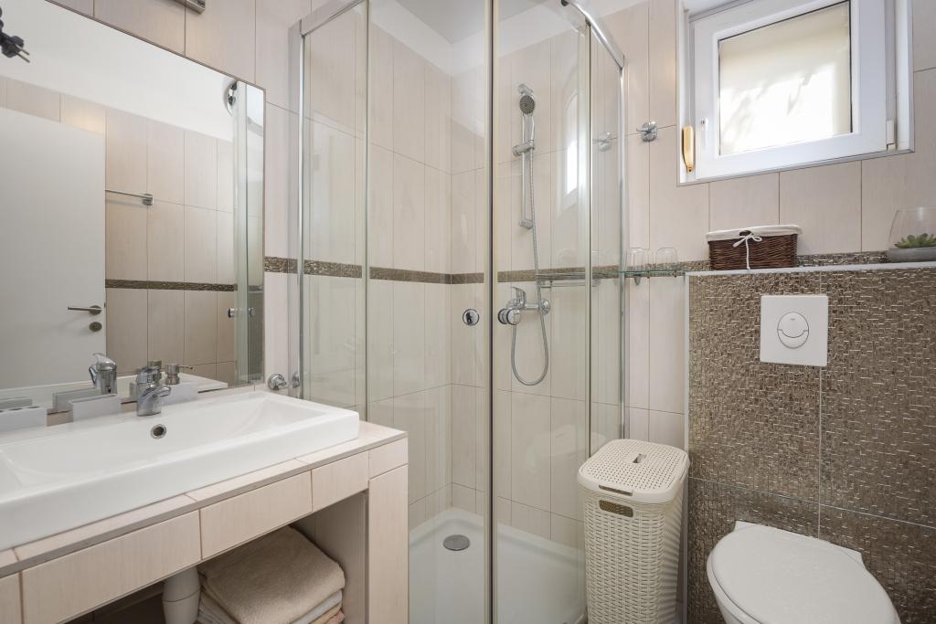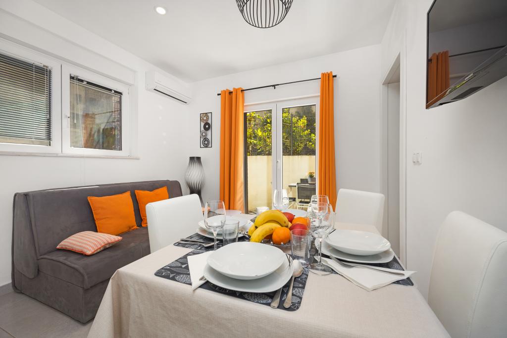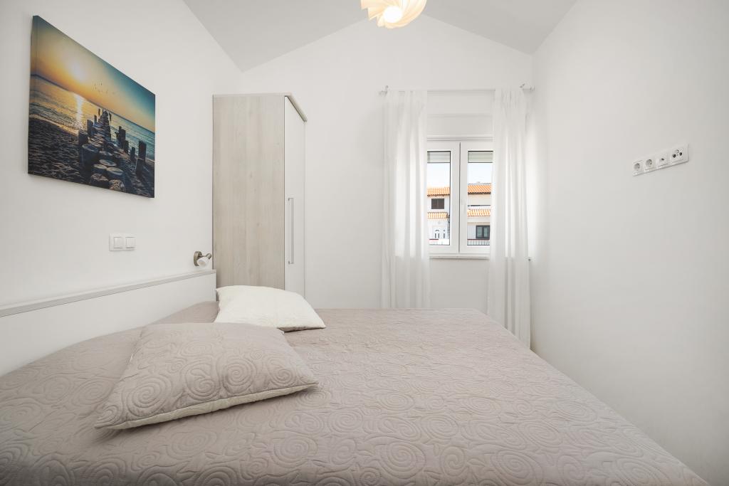 Pakoštane to małe dalmatyńskie miasteczko położone w samym sercu wybrzeża Adriatyku, w wyjątkowym położeniu między pięknym morzem a Jeziorem Vrana. Pakoštane otaczają cztery parki narodowe (Kornati, Krka, Paklenica i Jeziora Plitwickie) oraz dwa parki przyrody (Telašćica i Jezioro Vrana) o wyjątkowym pięknie, a także dwa duże miasta: Szybenik i Zadar. Apartamenty Bluemare znajdują się w idealnej lokalizacji w Pakoštane, zaledwie 50 metrów od plaży. W bezpośrednim sąsiedztwie domu znajdują się sklepy, bank, restauracje, kawiarnie, kantor wymiany walut i wszelkie inne niezbędne udogodnienia, które umilą Państwu pobyt. Dom został wybudowany w 2012 roku i mieści pięć luksusowo urządzonych apartamentów. Wszystkie są w pełni wyposażone i gotowe na Państwa przyjazd. Każdy apartament posiada: wyposażoną kuchnię ze wszystkimi sprzętami i naczyniami do gotowania i spożywania posiłków, ekspres do kawy, czajnik, telewizję cyfrową z programami satelitarnymi, klimatyzację, sejf, bezpłatny internet, taras, wyposażone łazienki i sypialnie. Do dyspozycji gości są również: parking, grill, plac zabaw dla dzieci, kuchnia letnia z piekarnikiem, zmywarką i wszystkimi przyborami kuchennymi. W apartamentach mile widziane są również małe zwierzęta (psy). Apartament Bronze znajduje się na niskim parterze i może pomieścić maksymalnie 4 osoby. Składa się z sypialni z łóżkiem małżeńskim, w pełni wyposażonej łazienki z prysznicem, tarasu, kuchni oraz salonu z rozkładaną sofą, która może stać się wygodnym łóżkiem dla dwóch osób. Apartament Silver znajduje się na pierwszym piętrze i może pomieścić maksymalnie 5 osób. Składa się z sypialni z łóżkiem małżeńskim i jednym mniejszym łóżkiem, w pełni wyposażonej łazienki z prysznicem, tarasu, kuchni oraz salonu z rozkładaną sofą, która może stać się wygodnym łóżkiem dla dwóch osób. Apartament Gold znajduje się na pierwszym piętr