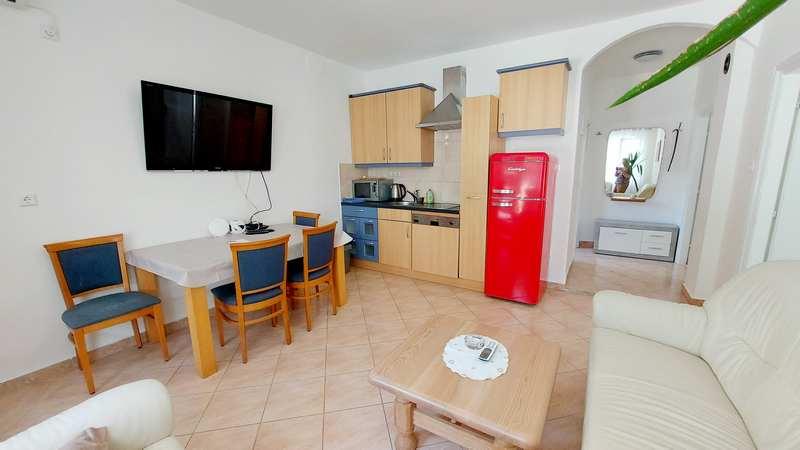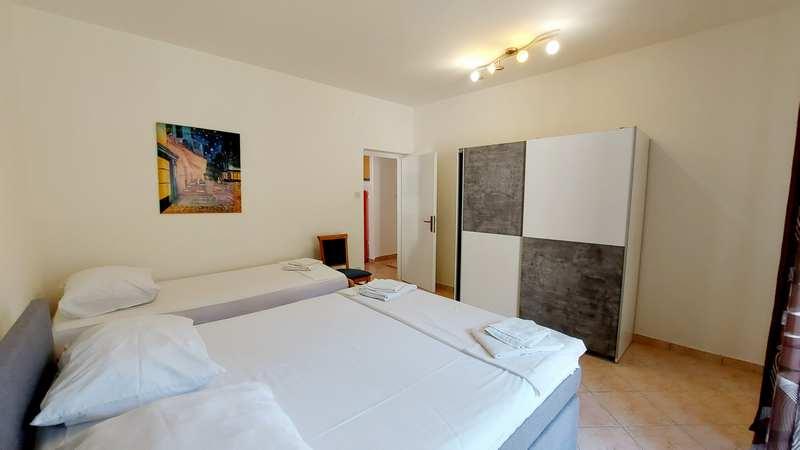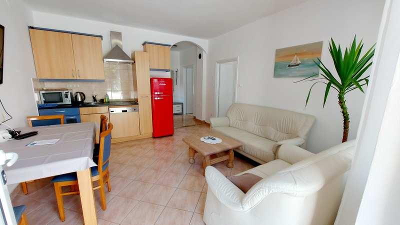 Opłata jest wliczone w cenę.apartament dla 5 osób ma 2 sypialnie i 1 łazienkę, mieszkanie na parterze dla 3 osób ma 3 sypialnie 3 łazienki, apartament dla 6 osób na pierwszym piętrze ma 3 sypialnie 3 łazienki zmywarkę, pralka do wszystkich mieszkań. Ręczniki dostępne i zmieniane raz w tygodniu. Opłata za klimatyzację: 5 € / dzień / opłata klimatyczna za apartament jest dodatkowa.