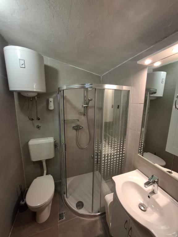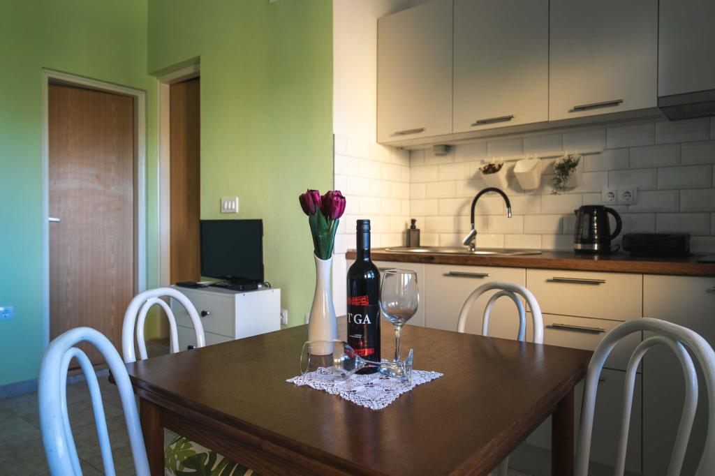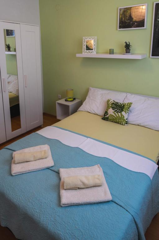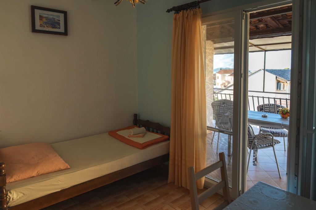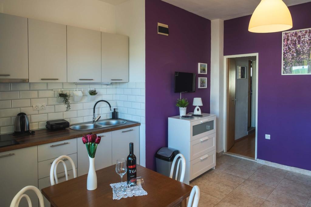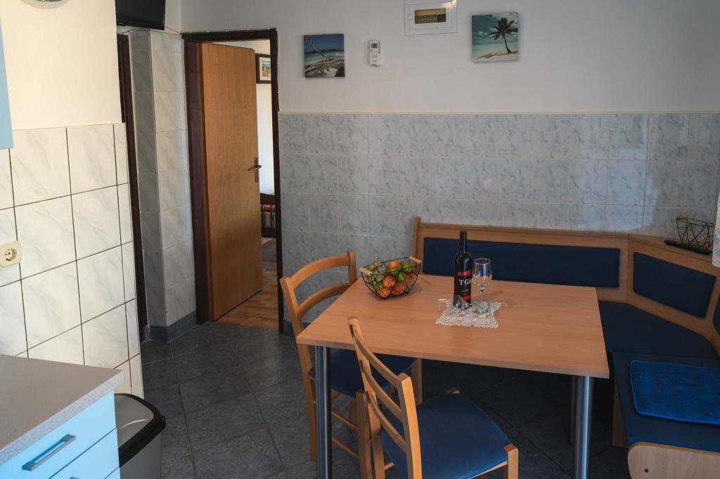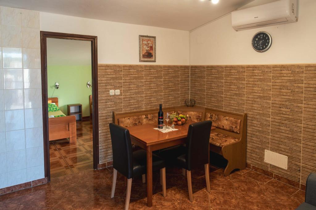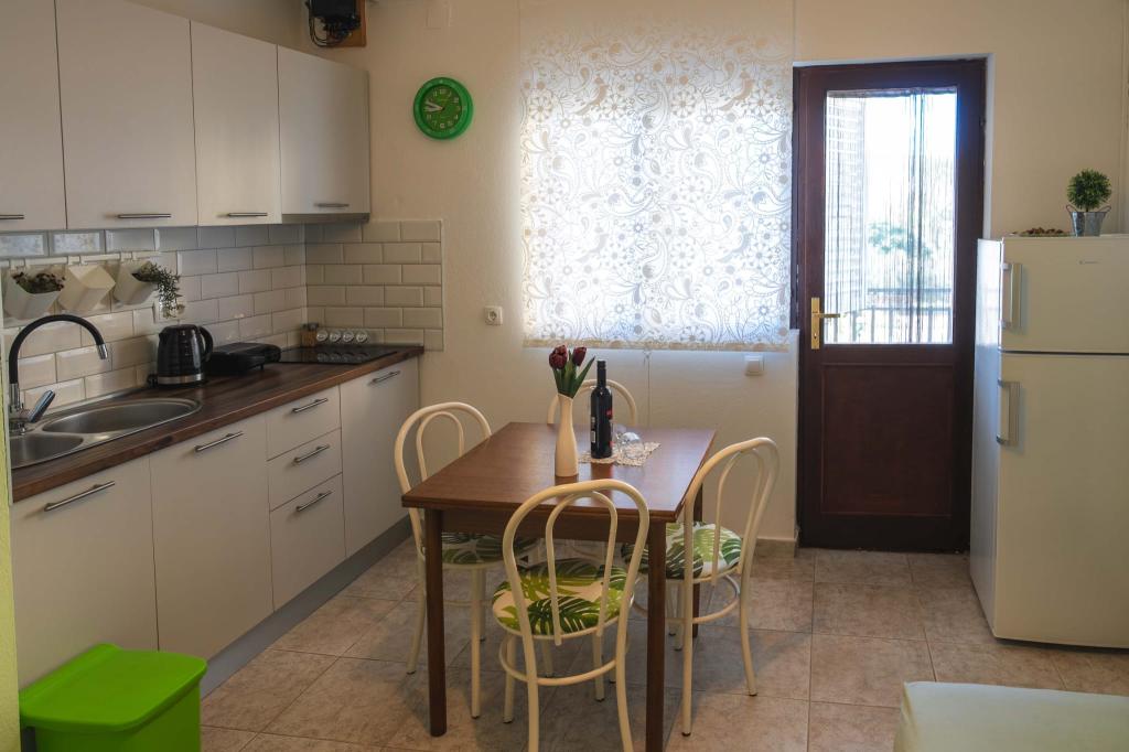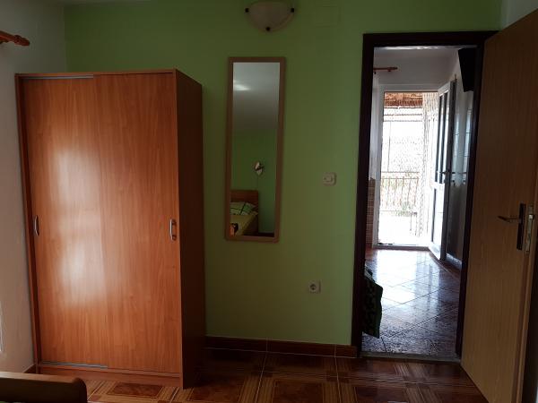 Cztery APP (2 2) w cichej części Pakostane. APP składa się z sypialni, gdzie podwójne i potrójne szafy. W pokoju dziennym znajduje się rozkładana (200x140), stół z czterema krzesłami, aw jednym kącie kuchni. Kuchnia składa się z sudopra, piece kuhanhe z piekarnikiem i lodówką. Apartament posiada klimatyzację i telewizję. Przed tarasem app ze stołem i czterema krzesłami dla Twojej aplikacji. APP znajduje się na pierwszym piętrze prywatnego domu. Dwupokojowe apartamenty składają się z dwóch sypialni, kuchni, jadalni i łazienki z prysznicem. Każdy apartament posiada duży taras z widokiem na morze, Klimatyzacja. TELEWIZJA. W ogrodzie grill huśtawki dla dzieci oraz parking na ogrodzonym terenie.