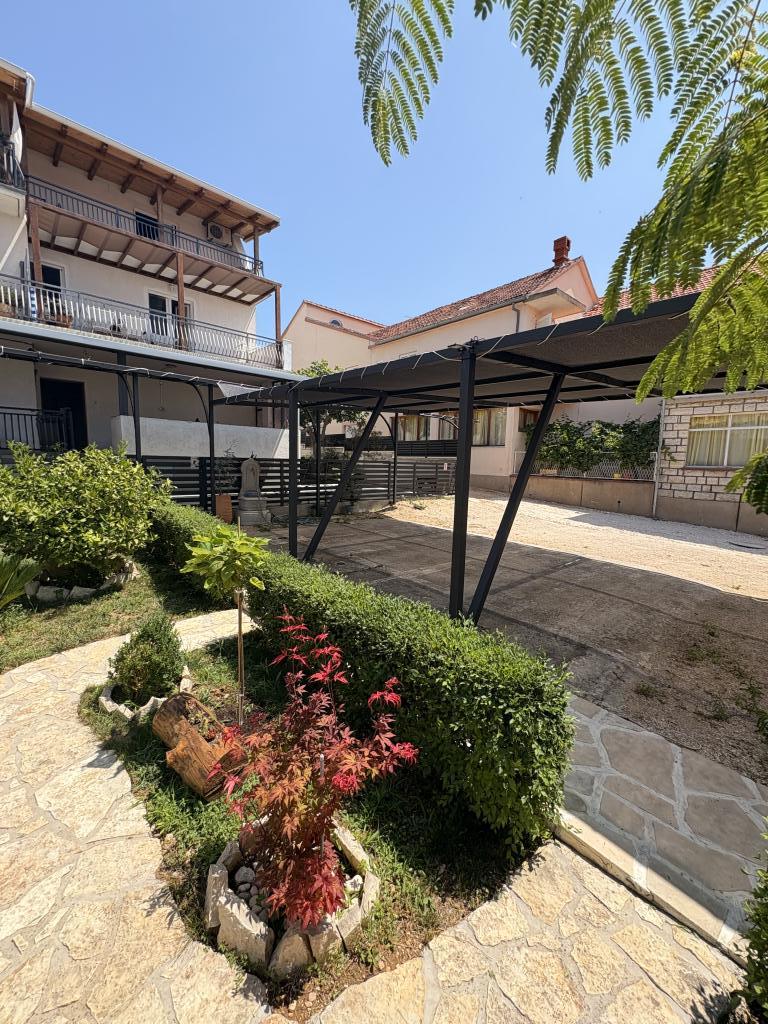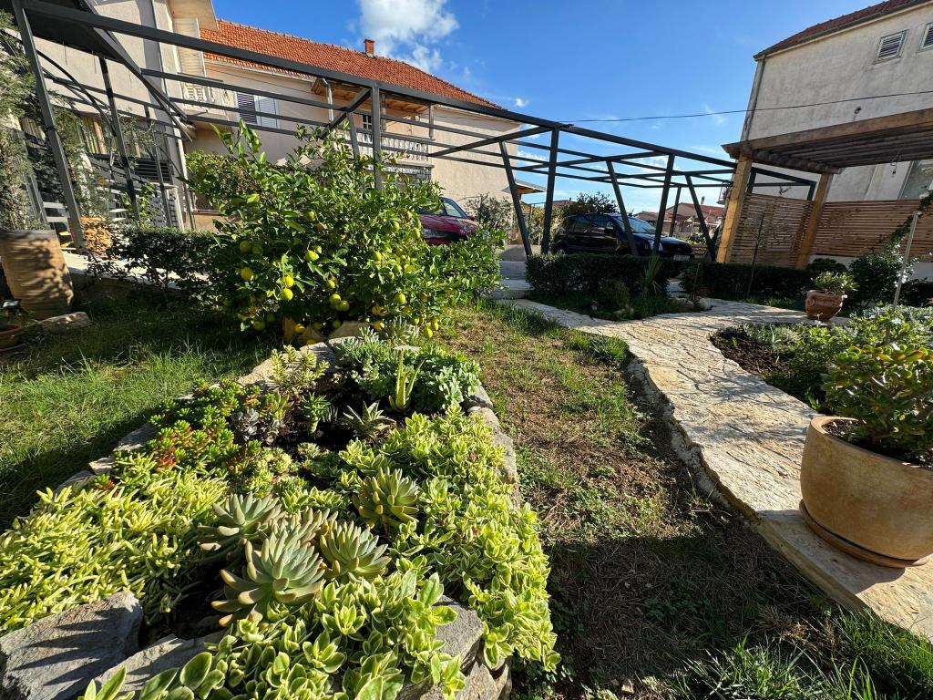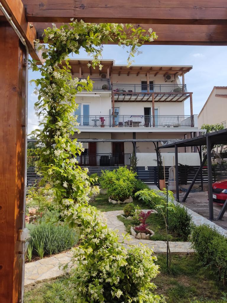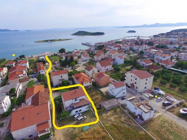 Dom z apartamentami położony jest blisko morza i miasta. Tylko pięć minut spacerem do plaży i oferuje spokój i prywatność. Przed domem znajduje się parking dla każdego pojazdu i ochronę przed słońcem. W ogrodzie jest grill, który można zawsze. Każdy apartament posiada własne wejście. Duże balkony od strony południowej z widokiem na morze.