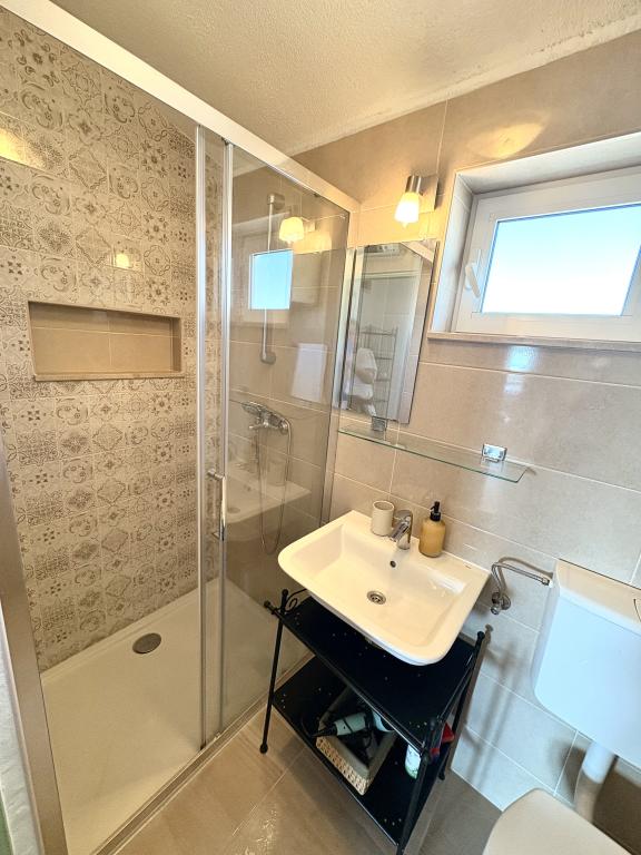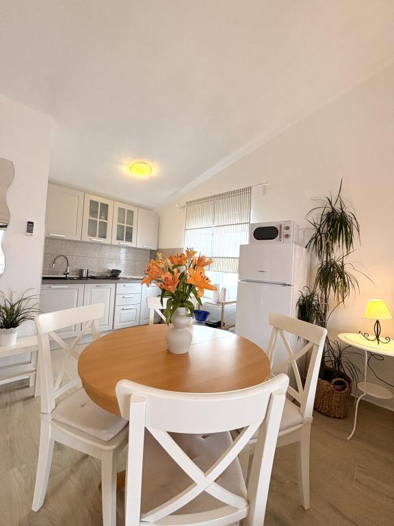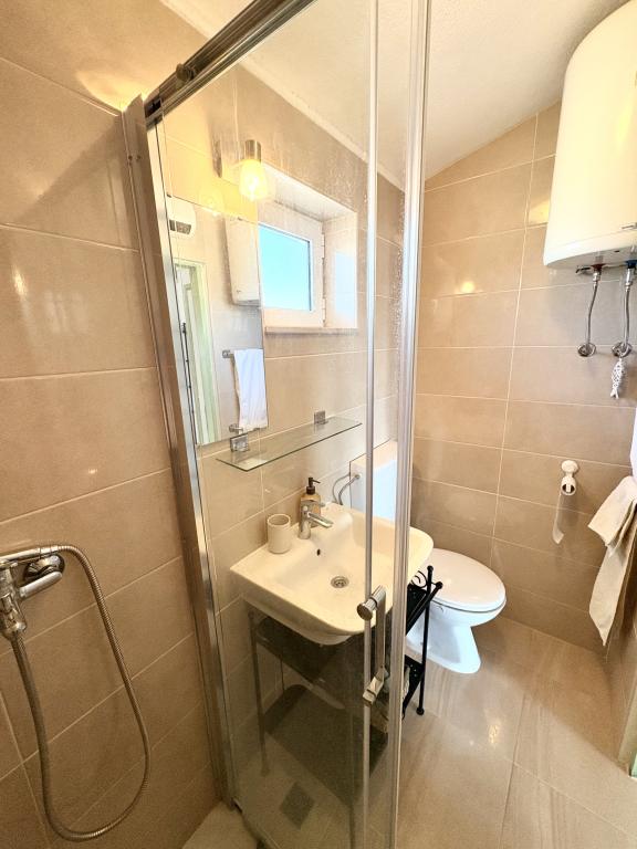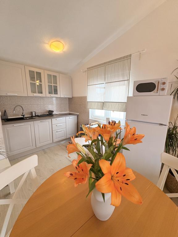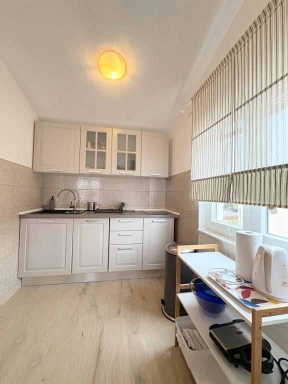 Świetne wakacje Bardzo ładne i dobre zakwaterowanie, duży taras ze stołem i krzesłami oraz leżak, na którym można korzystać z rolety przeciwsłonecznej, pokoje wyposażone w klimatyzację. Lokalizacja obiektu była dobrze oznakowana, dom ma duży parking na 4 samochody. Wyposażenie pokoju było według zdjęć w Internecie, wysłaliśmy również kilka nowych zdjęć od właściciela z nowym wyposażeniem pokoju (studia). Studio jest idealne dla rodziny z 2 dzieci, jest pełne łóżko dla 2 osób. Wyposażenie innych mebli jest dobre, wyposażenie kuchni jest wyposażone w sprzęt AGD, a meble dokładnie według zdjęć, naczynia wystarczą dla 4-osobowej rodziny, jest wszystko, czego potrzebujesz. W pobliżu domu znajduje się sklep z pieczywem i sprzedaż owoców i warzyw. Bardzo mili właściciele, sympatyczni i pomocni, bardzo dobra umowa. W odległości krótkiego spaceru do plaży. Wieczorem i nocą. Podobało nam się nasze wakacje, polecamy. Wypożyczyliśmy również inne studia - 2 + 2 i 3 + 1, nawet te były w porządku, w studiu 3 + 1 znajduje się idealnie zasłonięte siedzisko (pergola), na którym siedzi około 10 osób. W odległości krótkiego spaceru od domu (około 200 m) zaczyna się centrum miasta z dobrymi restauracjami i sklepami. Plaże są kamieniste - drobny żwir i beton.