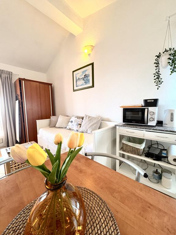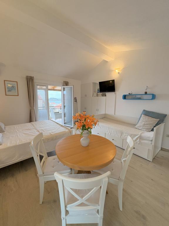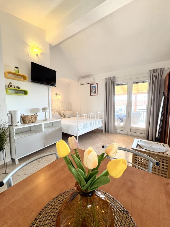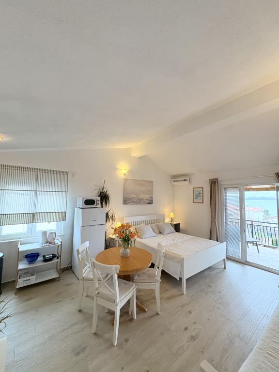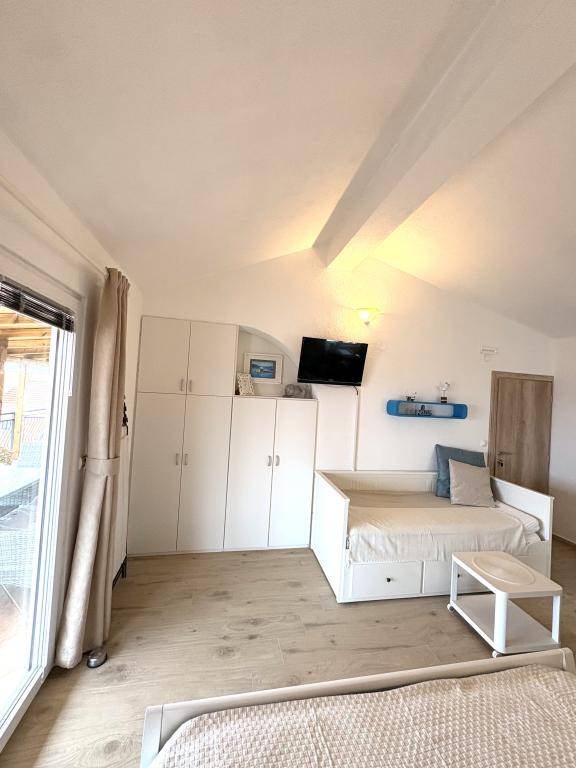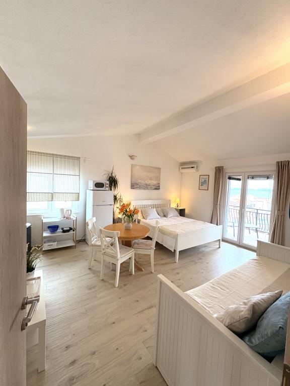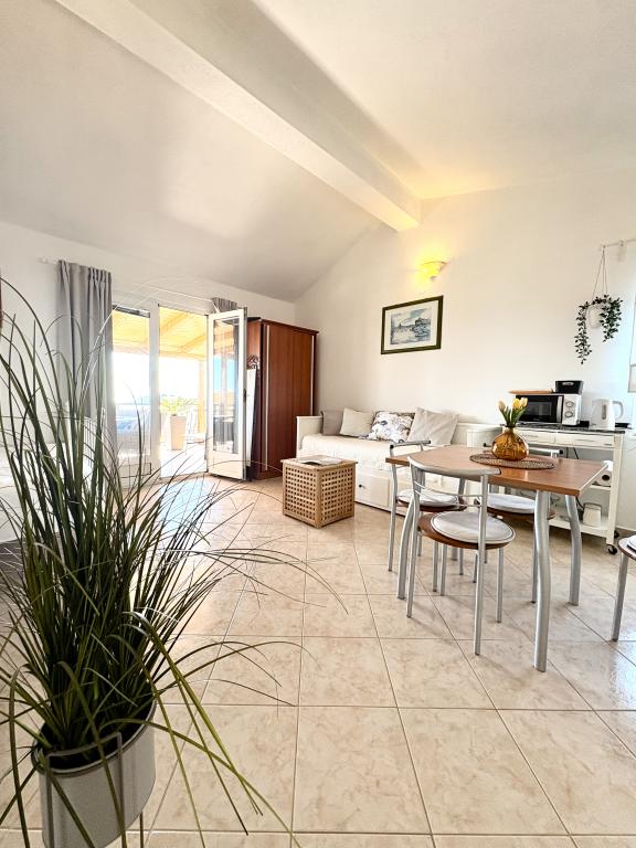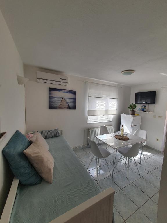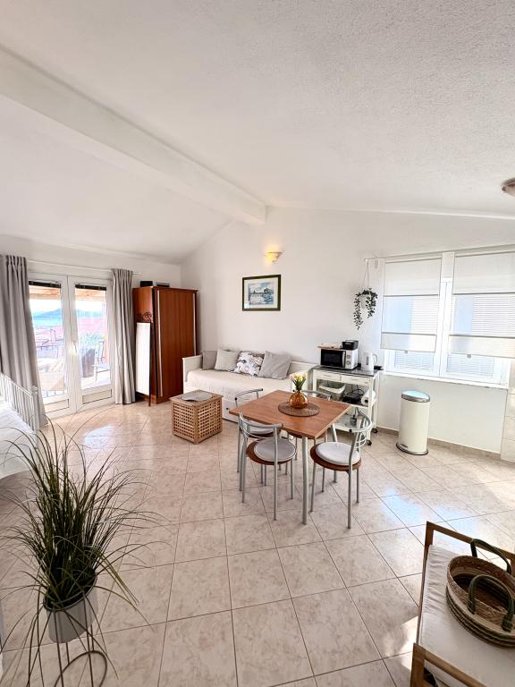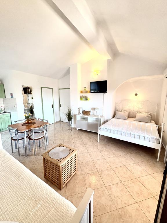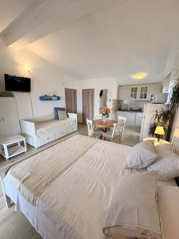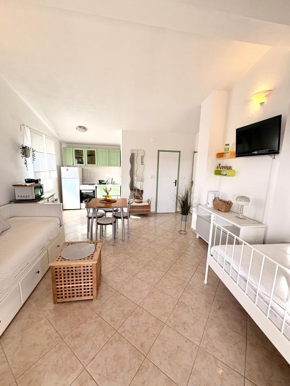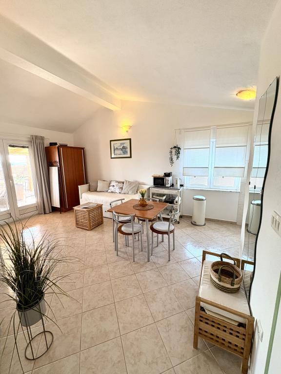 Bardzo ładne zakwaterowanie, piękny duży taras. Studio wystarcza dla rodziny z małymi dziećmi. Sprzęt jest świetny, wszystko, czego potrzebujesz. Bardzo mili właściciele, bardzo życzliwi i chętni. W odległości krótkiego spaceru do plaży. Wieczorem i nocą. Zalecamy cieszenie się naszymi wakacjami.