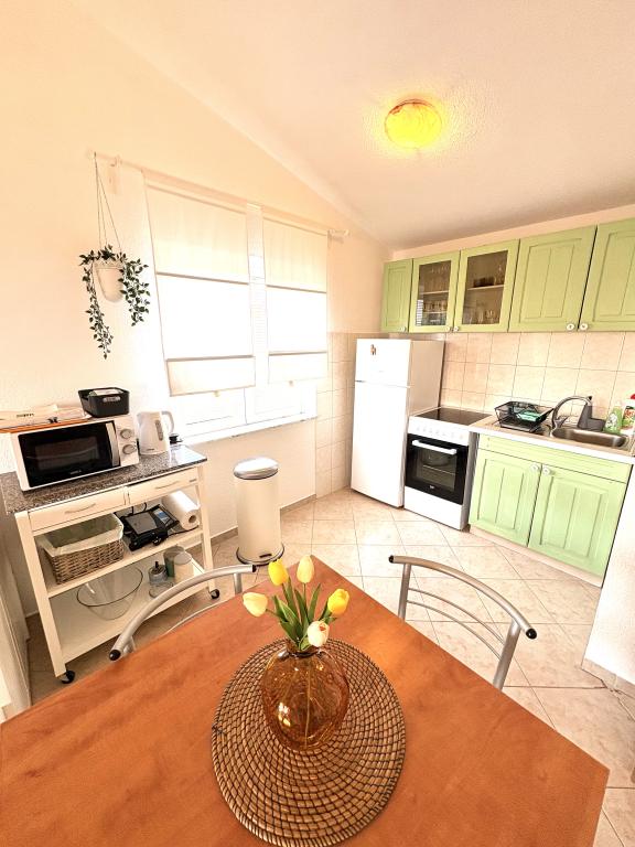 Bardzo gorąco polecam apartament u IVANY! Czysty, świetnie wyposażony, cudny widok na morze. Do plaży góra 200 metrów. Dokładnie wygląda wszystko jak przedstawiła na zdjęciach. Ogromy taras ze stołem dla 4 osób, leżanką, suszarką na bieliznę. Kuchnia wyposażona we wszystkie potrzebne akcesoria. Właścicielka sympatyczna, zawsze świetnie wita gości albo figami, albo arbuzem. Byliśmy u niej drugi raz i z pewnością jeszcze do niej wrócimy. IVANA! Pozdrawiamy i dziękujemy.
