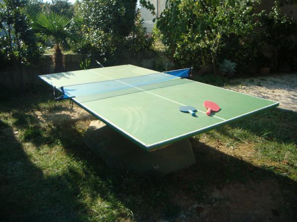 Posiadamy garaż na rowery, sprzęt do gier dla dzieci typu tenis stołowy, badminton, rzutki, wózki dziecięce, romobile, rowery... Grill zewnętrzny oraz meble do siedzenia w cieniu przy grillu i na trawniku. Oferujemy domową oliwę z oliwek i brandy.
