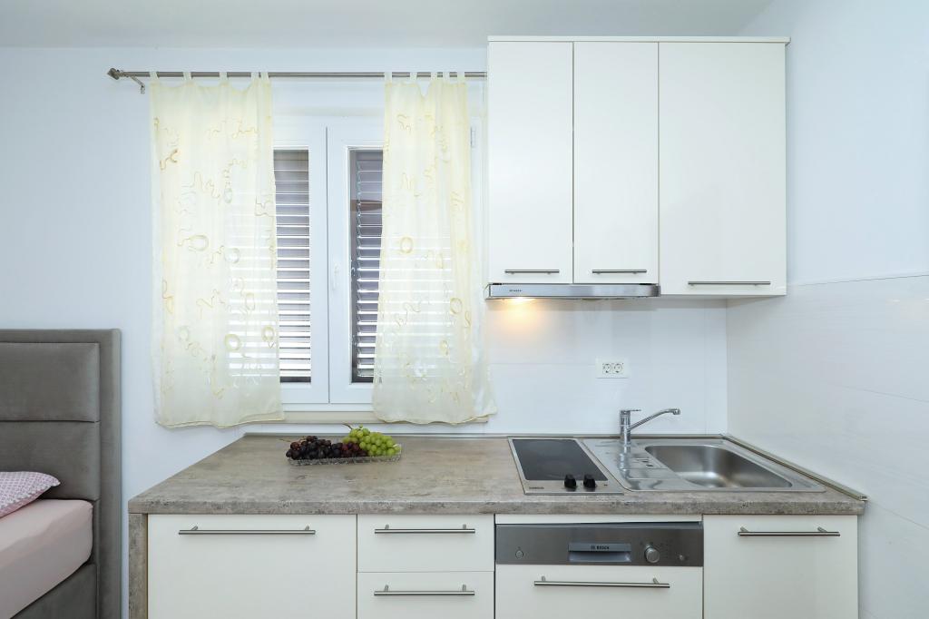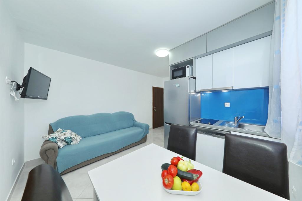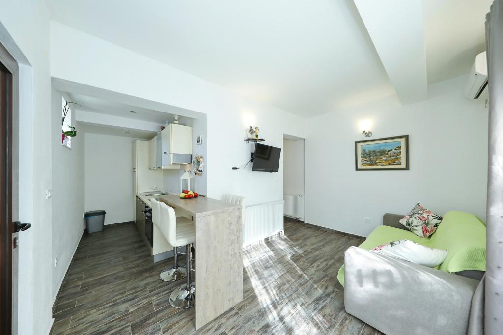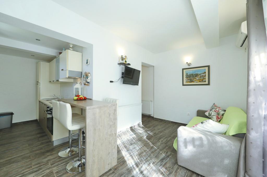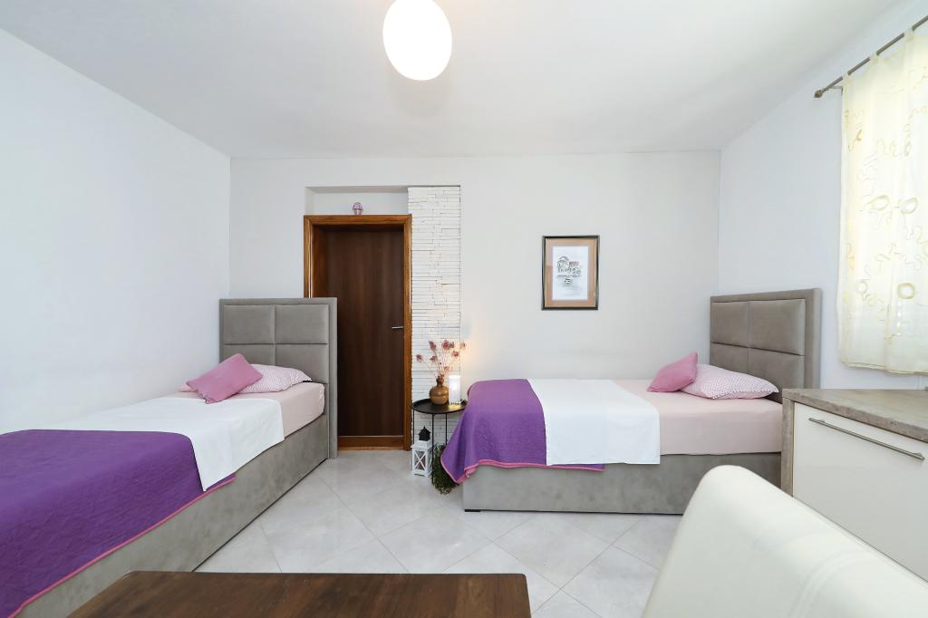 We wschodniej części Pakostane oferujemy 3 apartamenty. Apartament znajduje się w rodzinnym domu, tuż obok plaży Janice. Jedno mieszkanie jest na parterze i dwa apartamenty znajdują się na 1 piętrze. Apartamenty wyposażone są w telewizję satelitarną i klimatyzację.