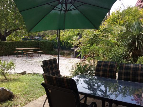 Mieliśmy naprawdę wspaniały pobyt w tych apartamentach. Są wyjątkowo przytulne i przemyślanie urządzone, ze wszystkim, czego możesz potrzebować na wygodny urlop. Kuchnia jest w pełni wyposażona w piękne naczynia, mnóstwo szkła, garnków i patelni – wszystko było na wyciągnięcie ręki. Jednym z naszych ulubionych miejsc była przestronna, zacieniona weranda z wygodnymi krzesłami – idealne miejsce na relaks o każdej porze dnia. Ręczniki były miękkie i wysokiej jakości, co zwiększało poczucie komfortu i troski. Chociaż apartament nie ma pralki, gospodarze uprzejmie pozwolili nam skorzystać z ich pralki, co było bardzo pomocne. Lokalizacja jest absolutnie idealna – zaledwie krótki spacer do fantastycznej restauracji, uroczego sklepu z owocami i warzywami, piekarni i najpiękniejszej plaży w okolicy. Supermarket i stare miasto z piękną promenadą również znajdują się w odległości krótkiego spaceru. Dom jest schowany w spokojnej, zielonej okolicy otoczonej drzewami, z śpiewem ptaków w powietrzu – naprawdę spokojne otoczenie. Bujny ogród pozostawał chłodny nawet w letnim upale, a my nawet nie musieliśmy używać klimatyzatorów. Na terenie posesji znajduje się również bezpieczny, zacieniony parking, co było bardzo wygodne. Serdeczne podziękowania dla naszych gospodarzy – tak miłych, uważnych i hojnych ludzi. Natychmiast odpowiadali na każdą prośbę i sprawili, że poczuliśmy się tak ciepło przyjęci. Jesteśmy głęboko wdzięczni za ich opiekę i gościnność.