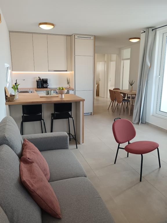 Byliśmy tam przez 9 dni, pod koniec sierpnia i na początku września 2016 i mieliśmy naprawdę świetnie. Zakwaterowanie było czyste, bardzo ładne, wygodne, ze wszystkimi niezbędnymi potrzebami. Kuchnia była dobrze wyposażona. Mieszkanie posiada duży, ładny taras - balkon osiągalny z kuchni iz pokoju, jak również. Byliśmy tam z dwójką dzieci, 3 lat i dziecko 9 miesięcy i naprawdę podobało nam się to miejsce. Plaża jest bardzo blisko, jeszcze lepiej z dwójką małych dzieci. Do centrum miasta jest blisko, także niektóre artykuły spożywcze i restauracje. Dziękuję za wspaniałe wakacje, będziemy szczęśliwi, aby odwiedzić ponownie.