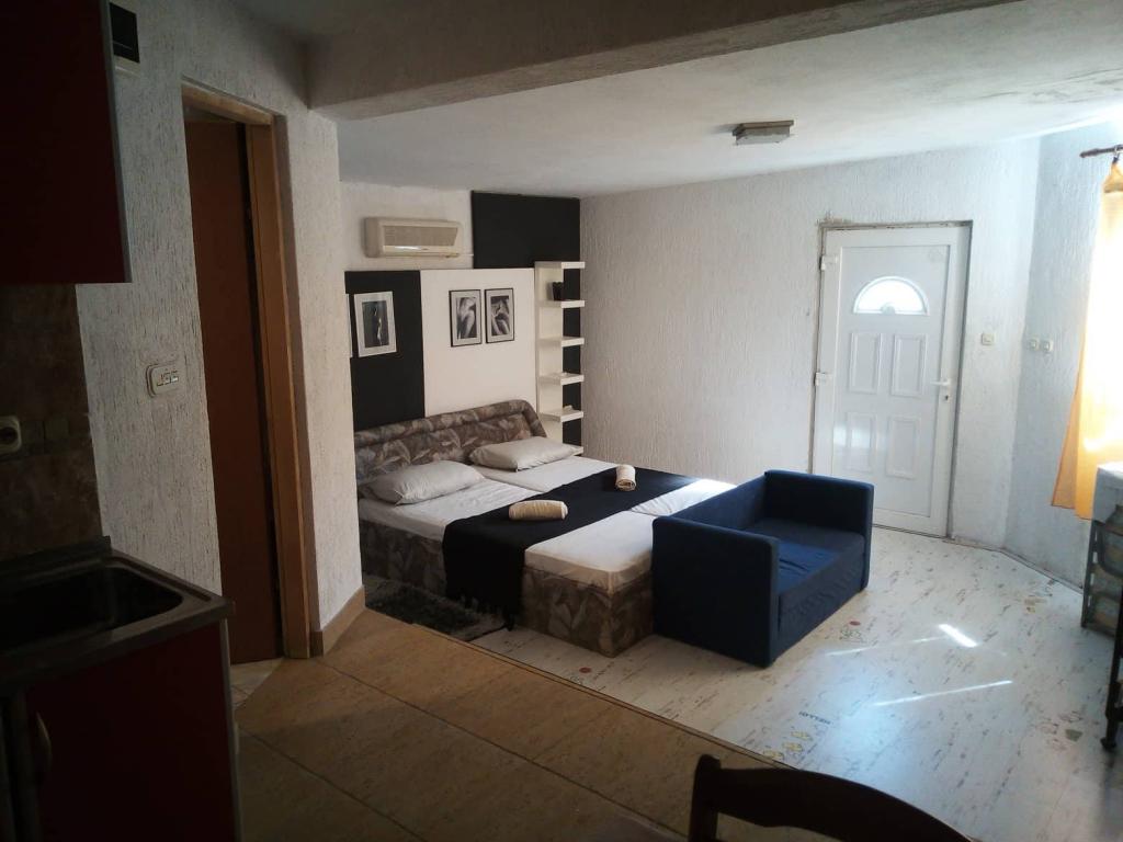 Apartamenty zlokalizowane są w ślepej uliczce, bez hałasu i ruchu ulicznego, dzięki czemu można w spokoju oddawać się relaksującej atmosferze. Każdy apartament posiada osobne wejście i prywatny taras, na którym można palić. Apartamenty są wyposażone we wszystko, czego potrzebujesz (pościel, ręczniki, naczynia...). Do plaży i do centrum jest 5-6 minut spacerem. W pobliżu apartamentu znajduje się restauracja i piekarnia. Apartament 1 znajduje się na pierwszym piętrze i składa się z dwóch sypialni, łazienki, przedpokoju, kuchni z salonem i tarasu. Apartament nr 2 znajduje się na parterze i posiada prywatny ogródek. Składa się z sypialni, salonu z kuchnią, łazienki i tarasu. Kawalerka znajduje się na pierwszym piętrze z tarasem - sypialnia, łazienka i kuchnia.